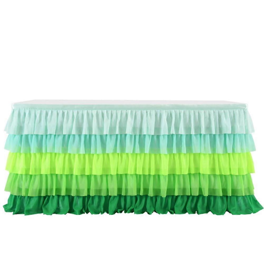 Tulle Table Skirt Green 6 Ft 183 X 77 Cm Fluffy Tutu Ruffle Pleated Chiffon Tablecloth For Wedding Banquet