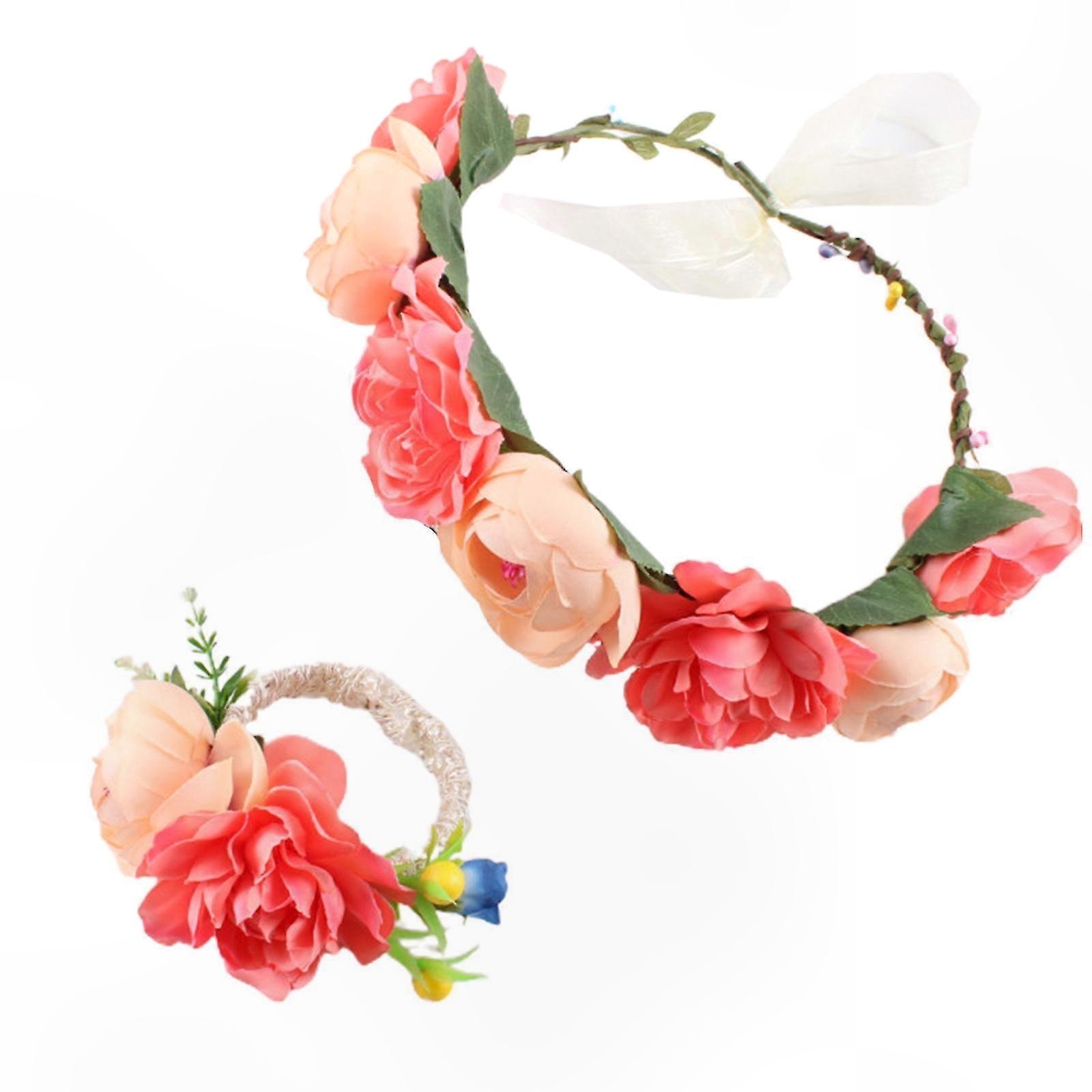 Bohemian Floral Headband for Women Wedding Bridal Flower Crown Garland Headpiece Red