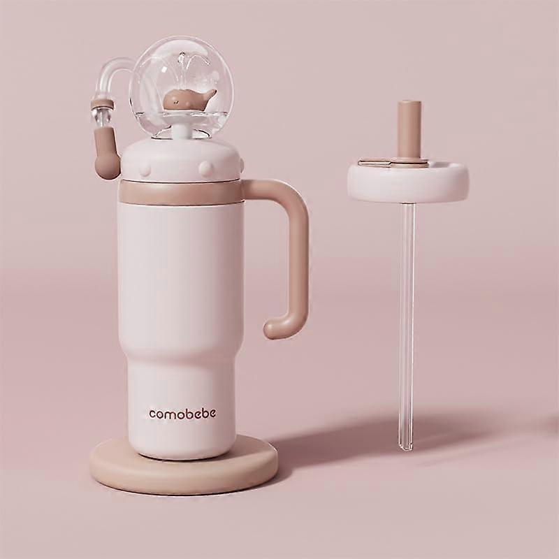 Whale Fountain Water Bottle With Handle 710ml Stainless Steel Cup, Whale Squirt, Spill-Proof, Pinkish Gray