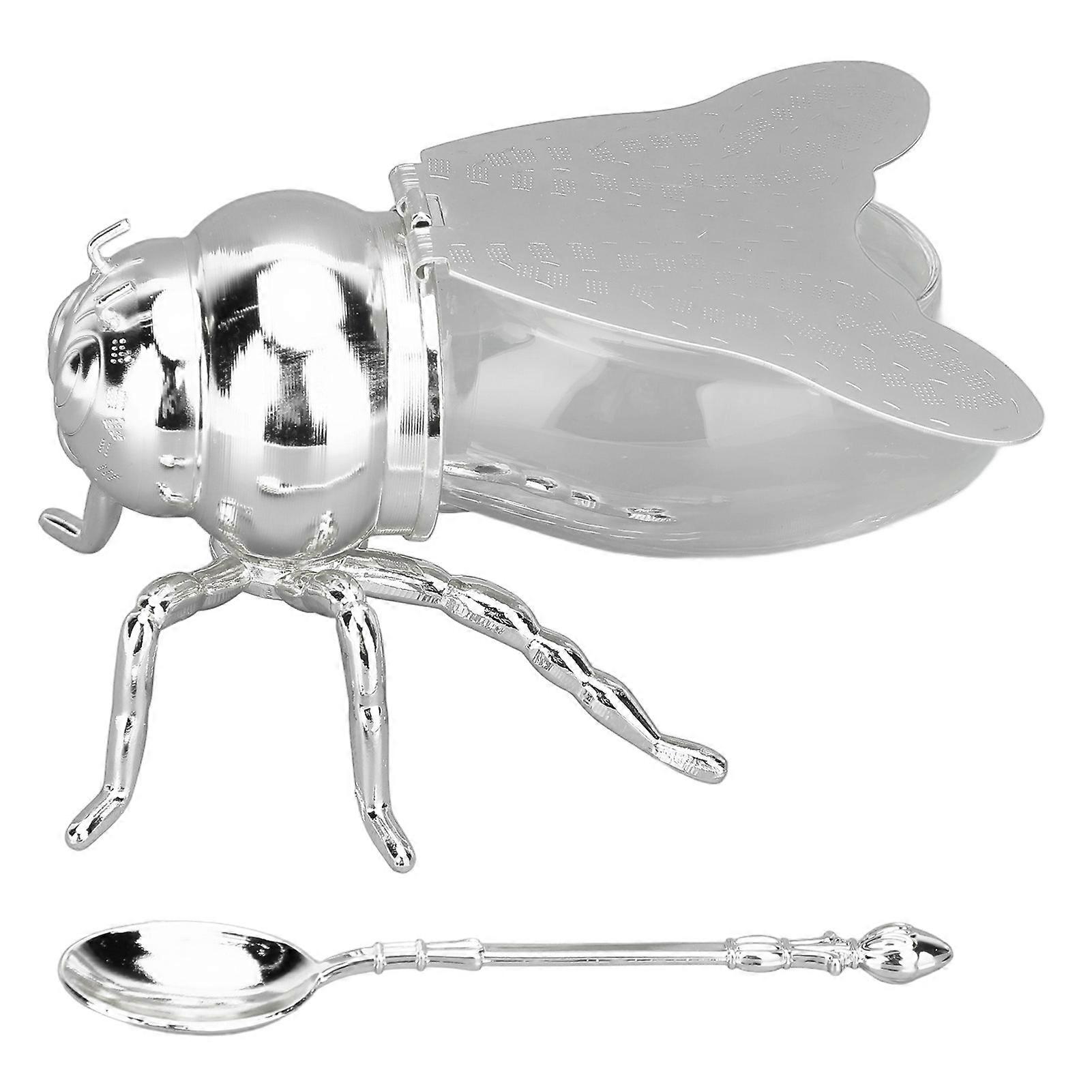 Bee Shaped Honey Jar Glass Honey Pot Decorative Kitchen Spice Container for Home Hotel Restaurant Silver Lid