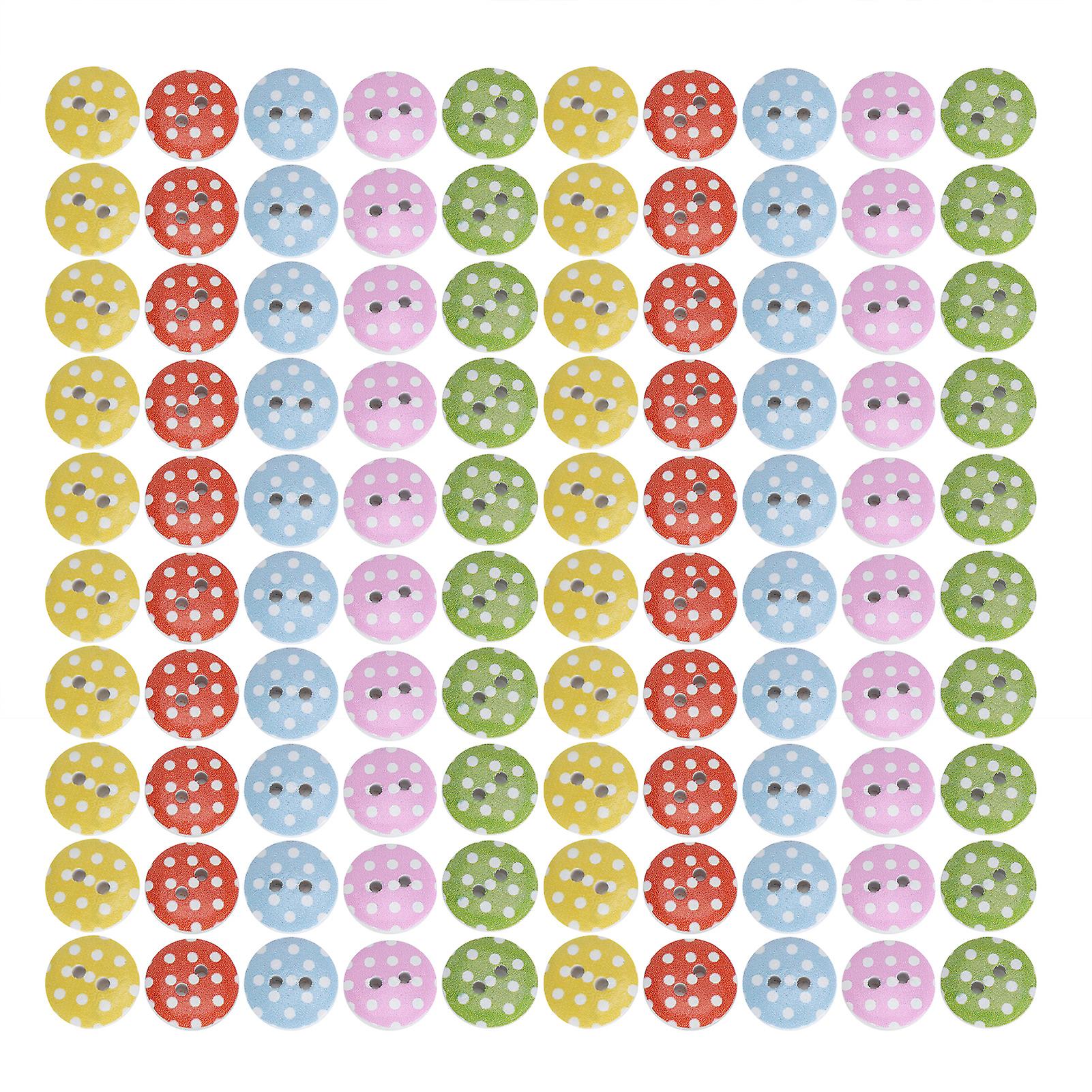 15mm Wooden Buttons 100Pcs White Background Multicolor Printed Sewing Accessories for Crafts Garments and DIY Projects
