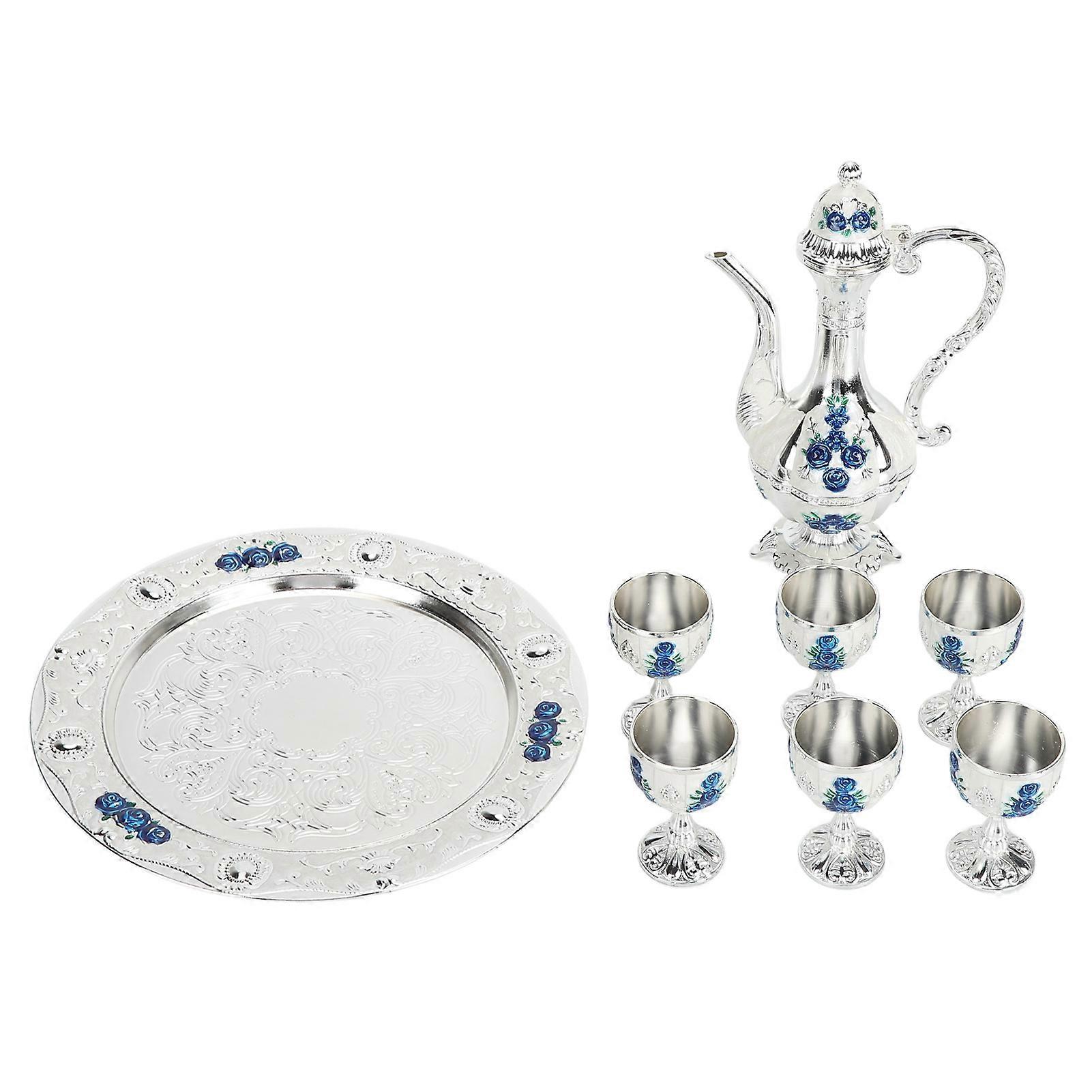 Rustproof Alloy Wine Glass Pot Set Retro Decorative Metal Wine Glasses for Home Party Wedding in Silver White Blue Colors