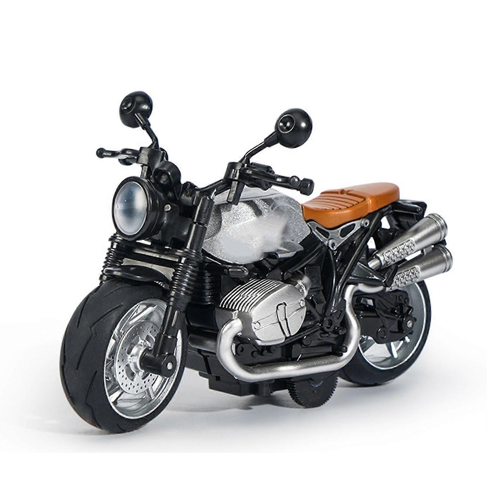 1:12 Scale Pull Back Motorcycle Model Toy Alloy Racing Motorcycle with Music and Light for Kids Silver Black