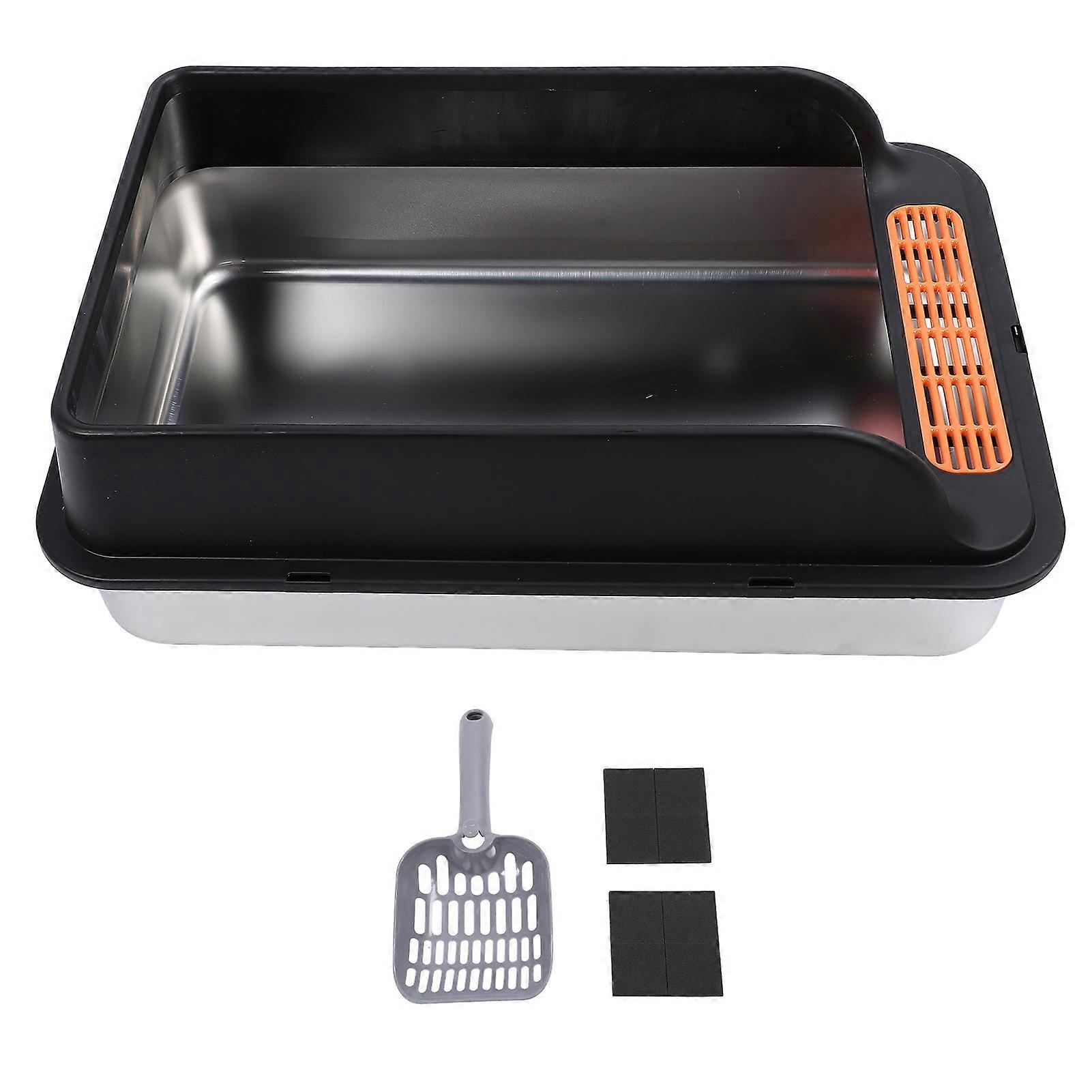 Large Stainless Steel Metal Litter Box High Sided Anti Splashing Kitty Litter Tray with Pedal Filter for Indoor Cats Black
