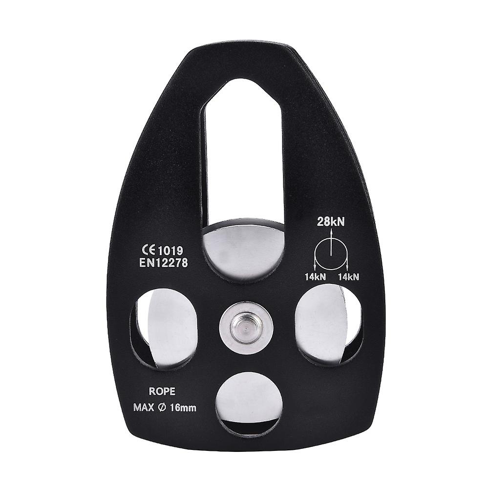 32KN Rescue Pulley Single Sheave with Swing Plate for Outdoors Climbing Black Durable Heavy Duty Safety Gear