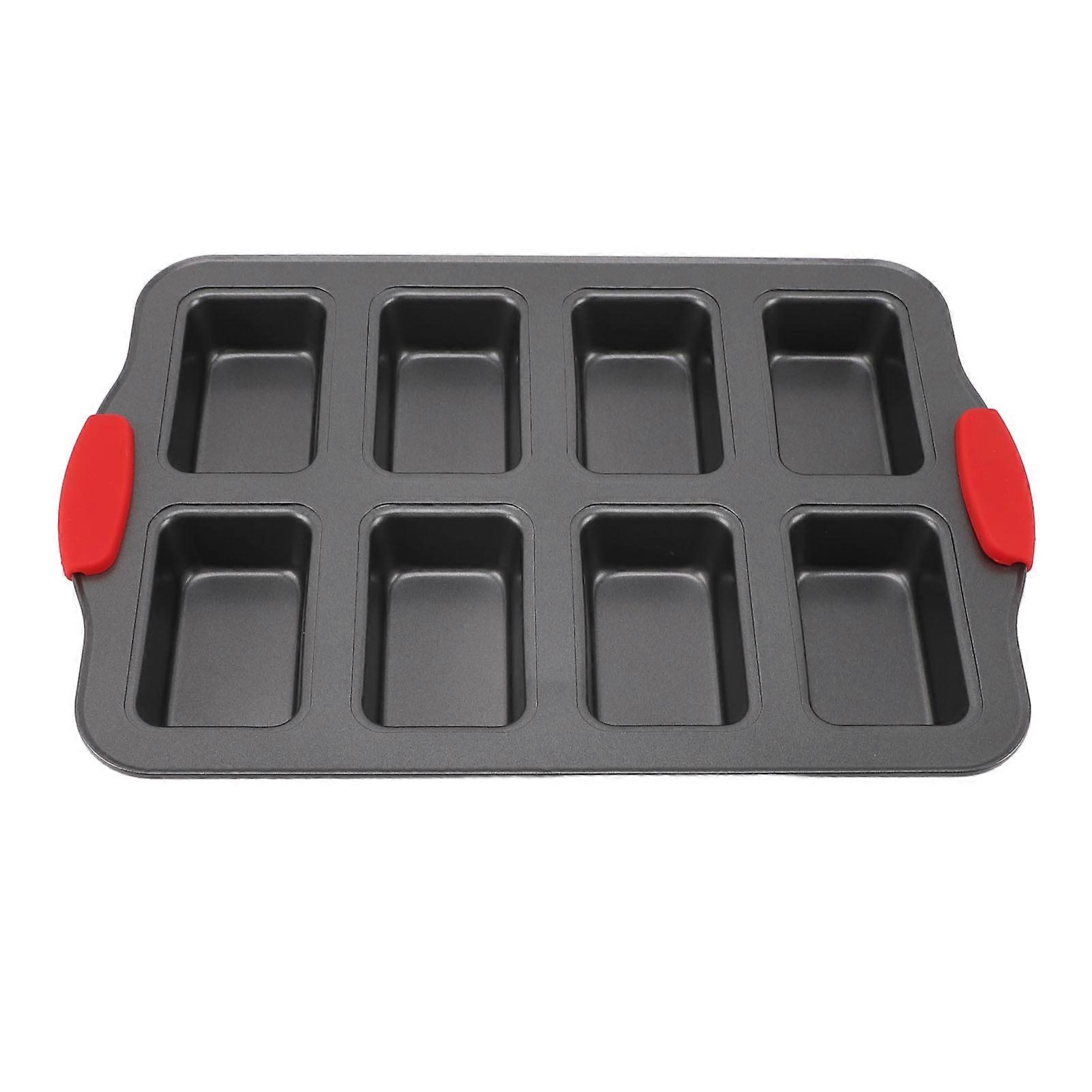 8 Cavity Mini Loaf Pan Carbon Steel Non Stick Rectangular Bread Baking Pan with Silicone Handle for Brownie Cheesecake