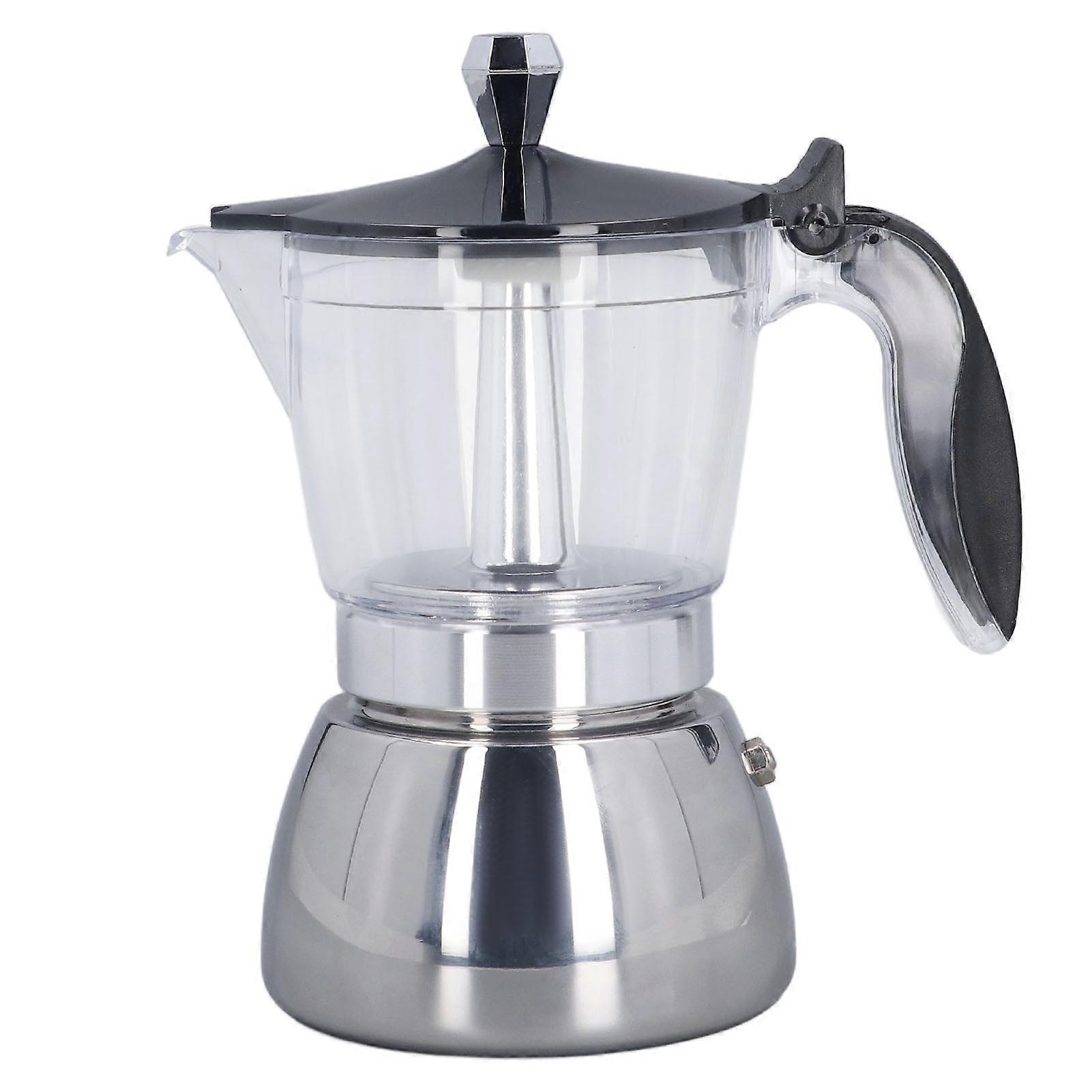 6 Cup Stovetop Coffee Maker Moka Pot with Clear ABS Top and Stainless Steel Body for Home and Office Use