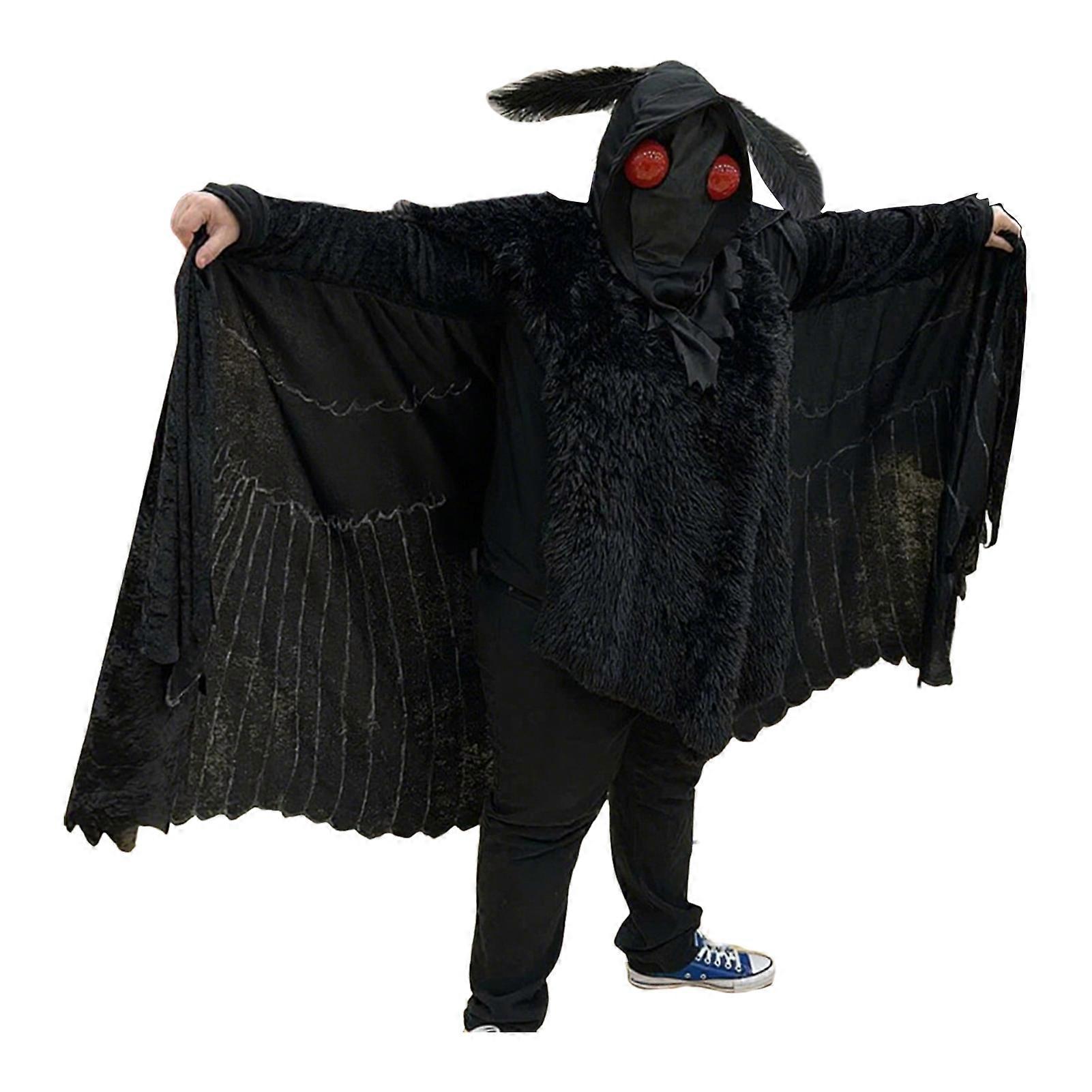 Mothman Cosplay Costume Halloween Hooded Cape for Men Women Adult Black Fly Onesie Outfit for Halloween Christmas Parties