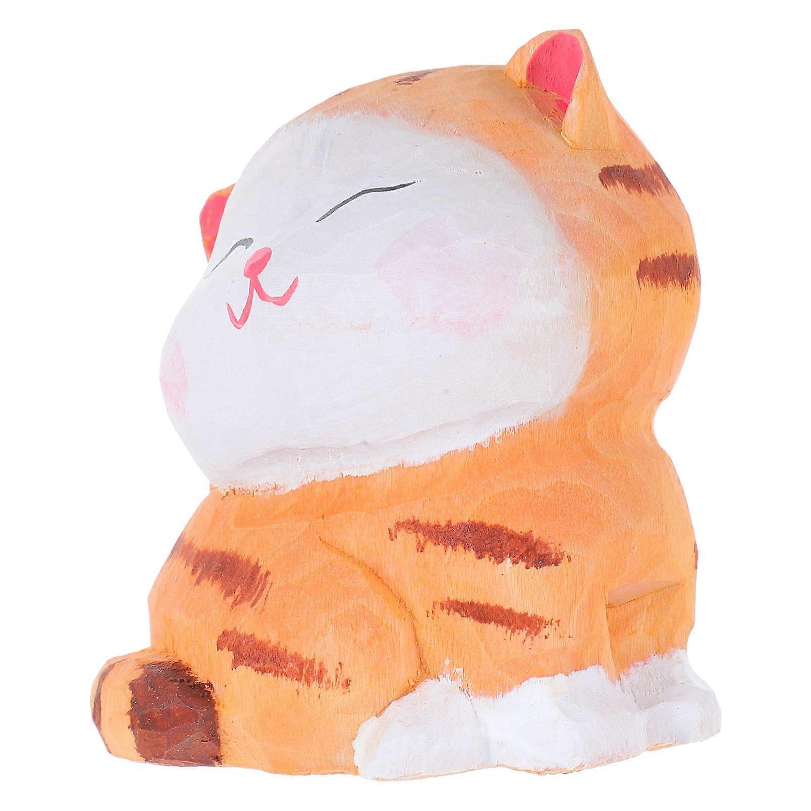 Wood Cat Sculpture Hand Carved Kitten Figurine for Desktop Decoration 5Pcs
