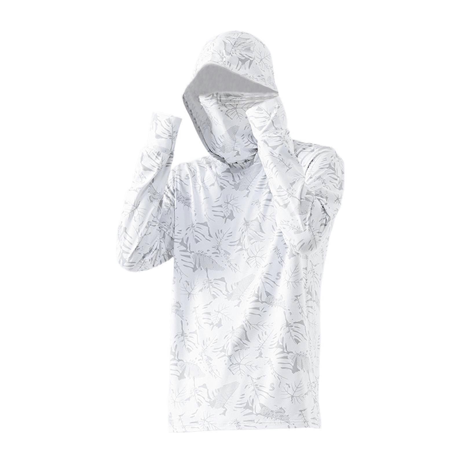 Men's Sun for Protection Hoodie Shirt Thin Rash Guard for Fishing Outdoor Summer M White