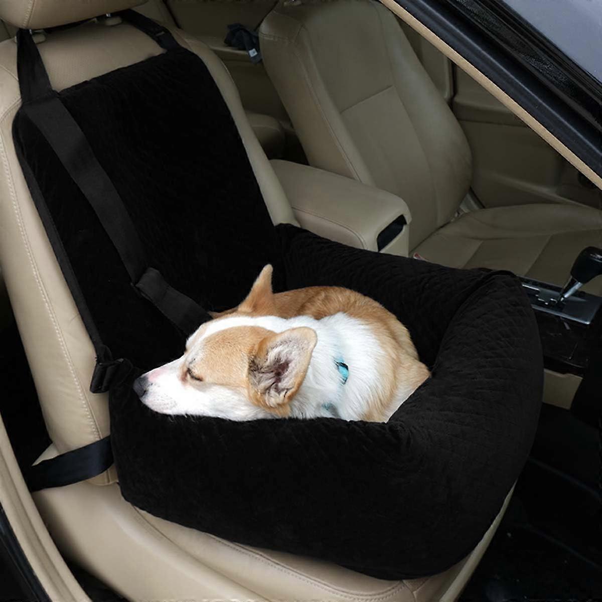 Size and compatibility S model: 52 x 50 x 57 cm, suitable for small to medium dogs up to 22 pounds. L model: 76 x 52 x 57 cm, suitable for medium to large dogs up to 55 pounds. Designed for both front and back seats and fits most vehicles including cars, SUVs, and trucks. Comfort and safety for travel Covered with super soft fabric and filled with density sponge and PP cotton. The 18 cm thick raised edge around the round bed provides security and supports the head and neck. Helps relieve joint and muscle pain and can ease anxiety for a more restful ride. Antislip base and protection Nonslip bottom keeps the bed fixed on the seat. Bottom features sticky beads and density fabric that is waterproof and dustproof, helping to prevent skidding and keep pets dry and warm. Easy installation and safety features Quick setup with an adjustable buckle and headrest. Includes leashes with rustproof buckles that can be attached to your dog's harness to prevent jumping out. Practical use scenarios Road trips and daily drives: keeps dogs secure and comfortable on long or short rides, suitable for both S and L sizes depending on your dog. Front or back seat use in cars, SUVs, or trucks: accommodates various seating configurations while maintaining stability. Vet visits or grooming trips: a familiar, secure resting place that reduces stress during car rides. What's included Adjustable buckle and headrest for easy setup. Leashes with rustproof buckles for securing your dog to the harness.