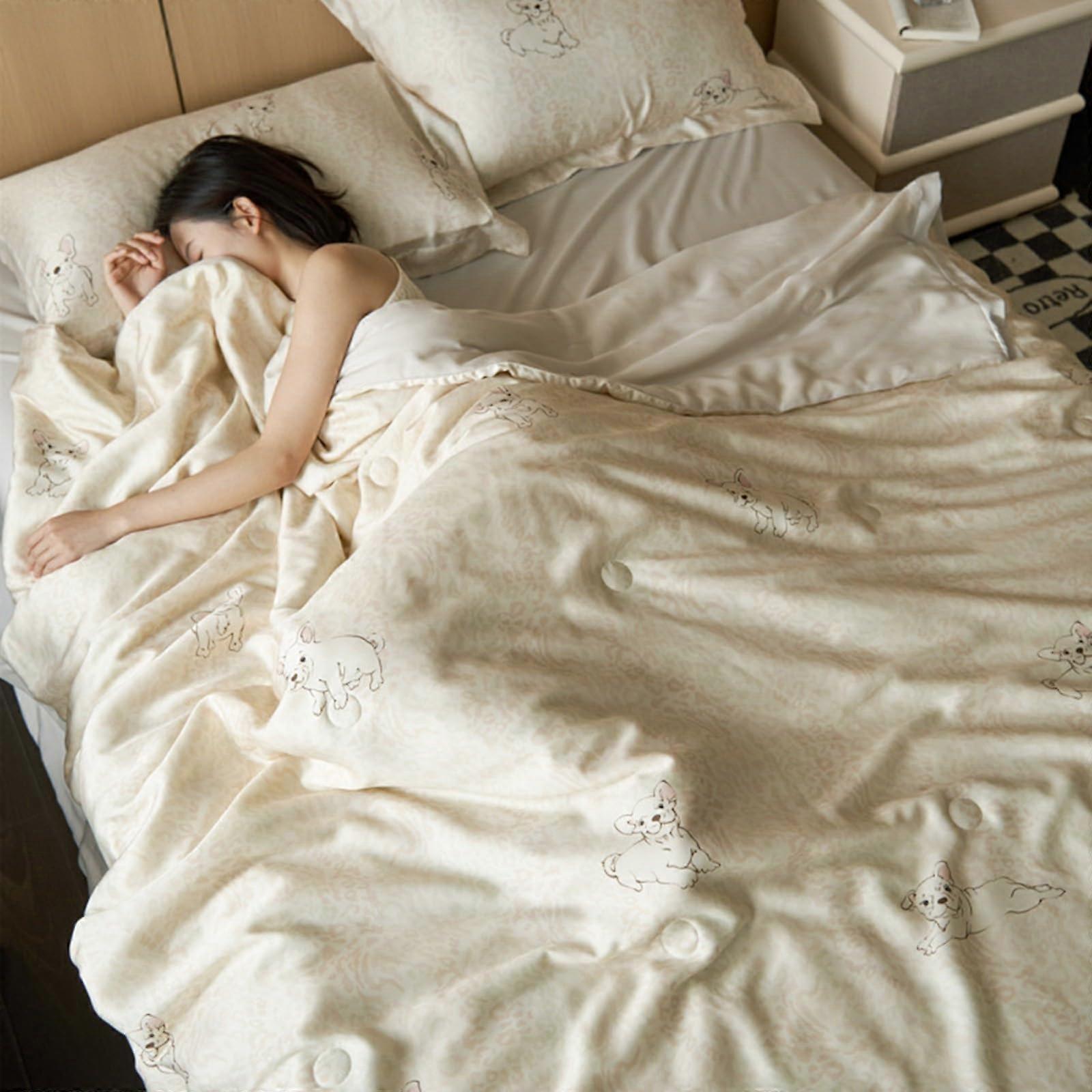 Keeps you dry and cool all year round. This cool summer blanket helps you stay comfortable in hot weather and can also support stress relief for a better night's sleep. Its cooling properties rely on strong heat absorption and dissipation for a cooler night. texture and materials This summer cool duvet cover is made of 1414% pure cotton jacquard water washed pleated yarn. It is delicate, soft, skin friendly, and not bulky. The inner washed cotton has a soft color, good elasticity, and fits snugly, making it very comfortable. Temperature regulation The gaps in the yarn form an air layer structure that stores excess body heat and exchanges it with the outside air. This design automatically adjusts to help keep the skin cool and comfortable in summer. Cool and breathable experience This cool blanket in summer offers a better icing effect when used with a fan. It can quickly reduce about 21318 and can produce noticeable differences in sleeping comfort. Use scenarios Hot summer nights in bedrooms with a fan or air conditioning to enhance cooling and sleep quality. Warm climates or offices where a lightweight, breathable covering is desired for relaxed rest or naps. Year round in seasonally warm environments for a comfortable, cooling sleep surface.