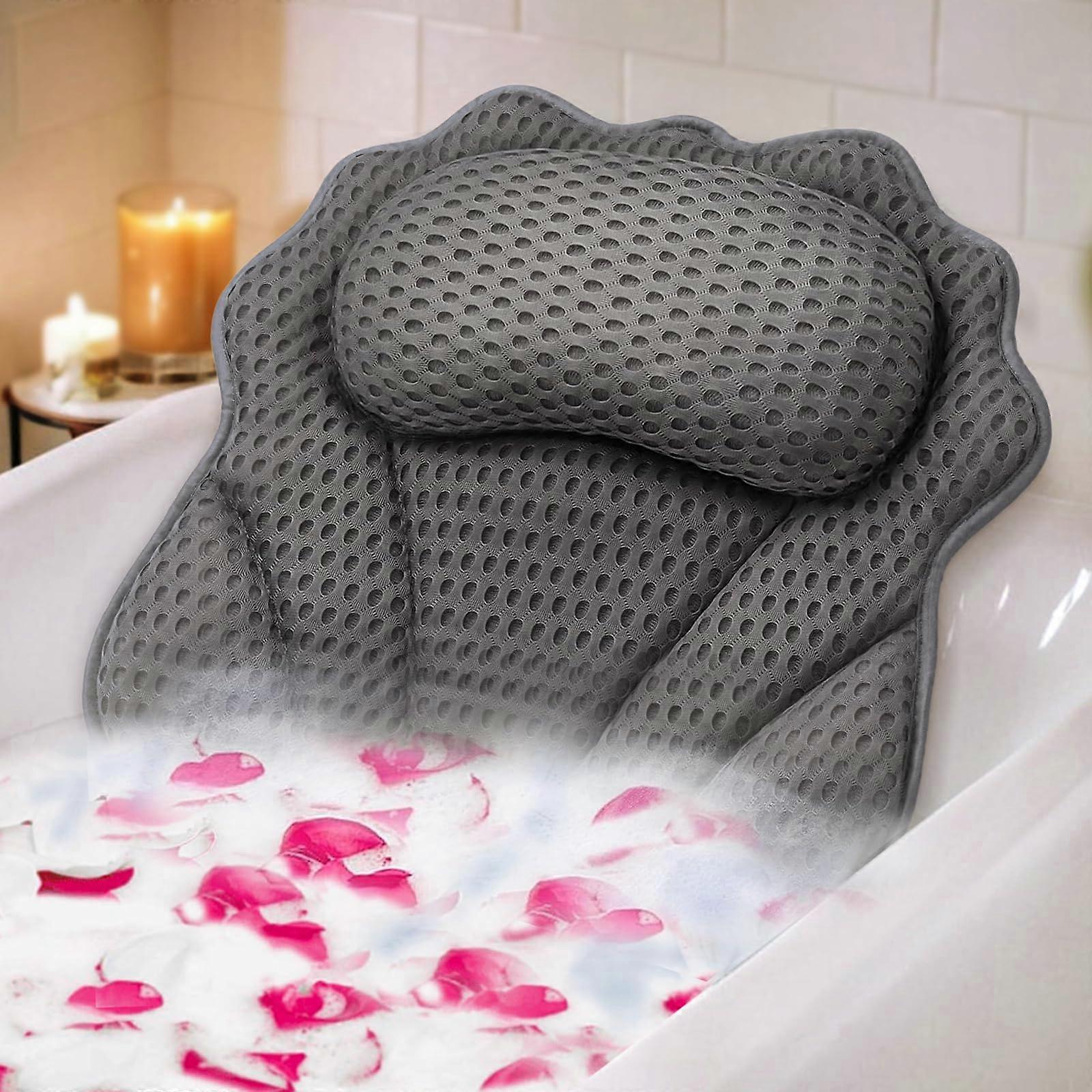 This bath pillow features upgraded 4D air mesh technology, delivering better breathability and ventilation, higher resilience, and a smoother surface. It maintains its shape easily, dries quickly, and resists odors. The smoother surface provides a comfortable touch. Ergonomic design for comfort: The headrest supports the head and neck for maximum comfort and relaxation. Extrathick shoulder and back padding offer added support for the shoulders and back. Compatible with all tubs, including bathtubs, spa tubs, and hot jacuzzis. Strong attachment: Equipped with six powerful suction cups to prevent sliding or movement during use. Comfortfocused padding: Ultrasoft, thick padding cushions the head, while the longer back support provides comfortable support for the back and shoulders. Use scenarios: At home bath: Place in your tub for a comfortable soak after a long day, focusing on neck and shoulder relief. Spa or hotel tub: Use in spa tubs or hotel bathtubs to enjoy a supported, relaxing soak during a getaway. After activity: Use after workouts or long periods of sitting to help ease neck and shoulder tension while you soak.