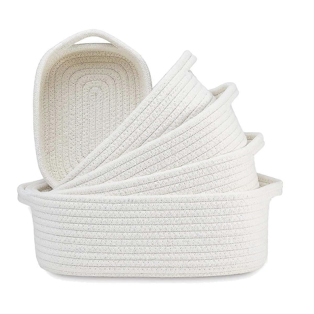 5-Piece Cotton Rope Woven Rectangle Storage Basket Set for Organizing Baby Nursery and Dog Toys, White