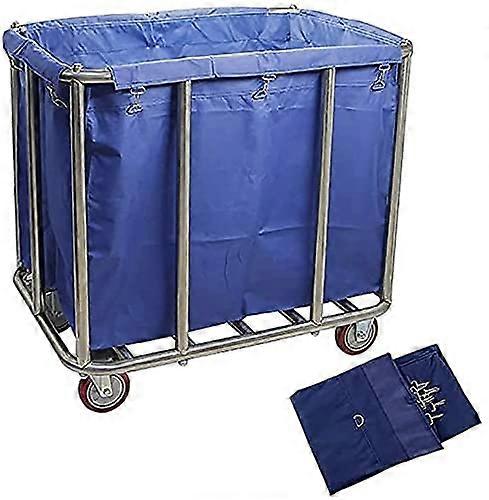 Shelf Movable Trolley with Removable Bags, Heavy Duty Stainless Steel Hotel Laundry Serving Cart, Detachable Blue Laundry Sorter