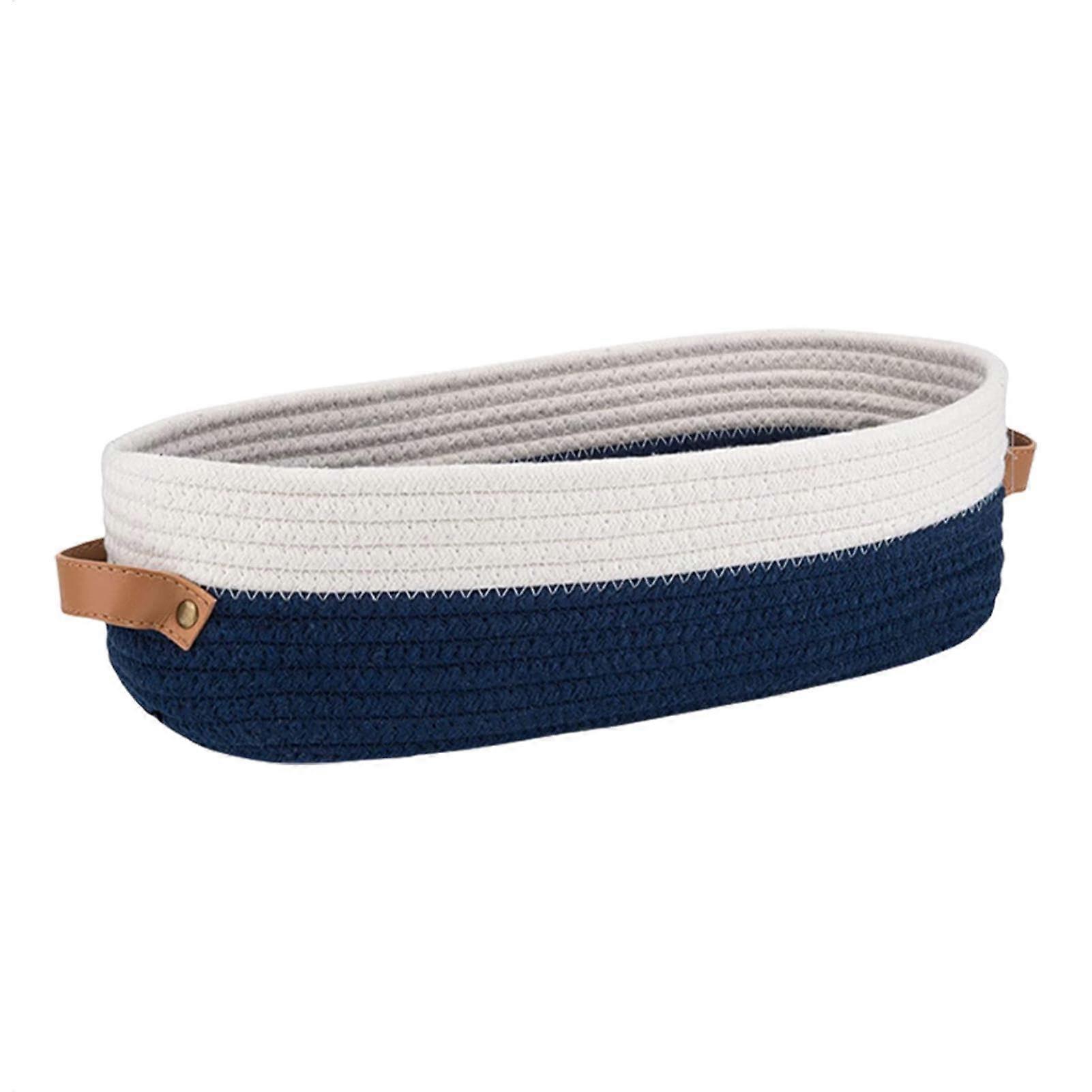 Cotton Rope Basket | Large Soft Storage Bin for Toys, Books, and Toiletries | Blue and White Organizer for Bedrooms and Bathrooms