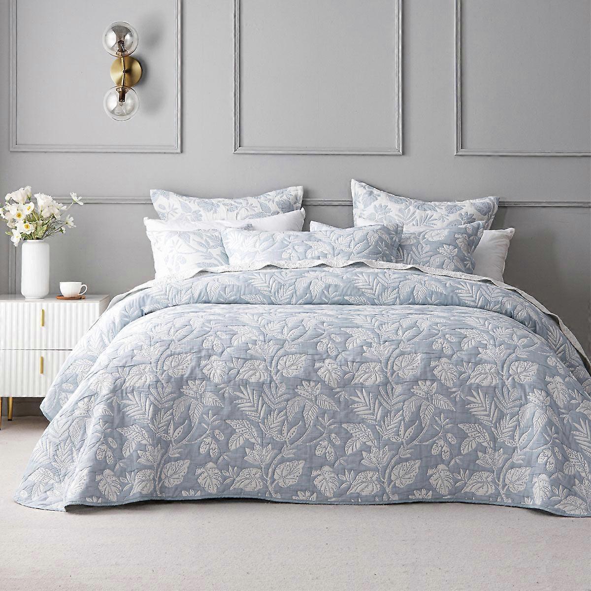 The Soft Blue And White Tones Paired With A Detailed Jacquard Botanical Design Gives This Bedspread A Timeless Graceful Look. The Pattern Adds Texture Without Overwhelming The Room Making It A Lovely Match For Both Traditional And Modern Interiors. Finish Off The Look With Coordinating Accessories Available For An Additional Cost.