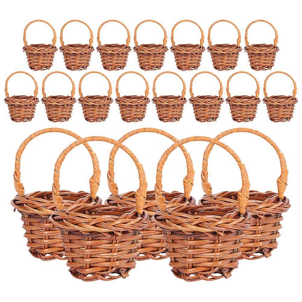 These hand-woven storage baskets provide a charming way to declutter and decorate at the same time. With their natural woven appearance and convenient handles, they offer a blend of style and usability. Suitable for organizing crafts, flowers, or other small items, they simplify daily tasks while enhancing aesthetics. Their portable nature makes them adaptable for indoor and outdoor use, such as picnics or tabletop displays. Features -Color:Coffee -Material:Plastic -Size:6.50X4.00X4.00cm/2.55X1.57X1.57in -Unique handmade craftsmanship: every woven basket reflects meticulous attention to detail, showcasing the beauty of handmade artistry in every piece -Enhances living spaces: whether placed in the living room, bedroom, or kitchen, these baskets add a touch of elegance and coziness to any corner of your home -Nice choice: with these adorable mini baskets, which double as both practical organizers and delightful decorative keepsakes -Miniature yet functional: these baskets offer ample utility for storing everyday items like coins, buttons, or sewing kits -Adaptable decor piece: suitable for various purposes, these baskets cater to all your needs Package list: 20 x decorative baskets