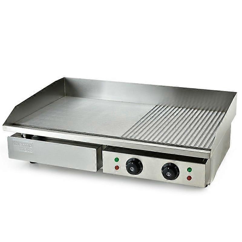 The Thermomate Commercial-Grade Electric Griddle Is The Perfect Countertop Cooking Solution For Busy Food Vendors. A Comprehensive Heat Element Is Powered By 4.4Kw Of Heating Power Via The Convenience Of Two 10A Plugs So You Can Use It Anywhere. With Dual Zone Temperature Control From 50 To 300C It Offers The Versatility To Cook Everything From Steak On The Ribbed Side Of The Plate To Stir-Frys And Pancakes On The Other.