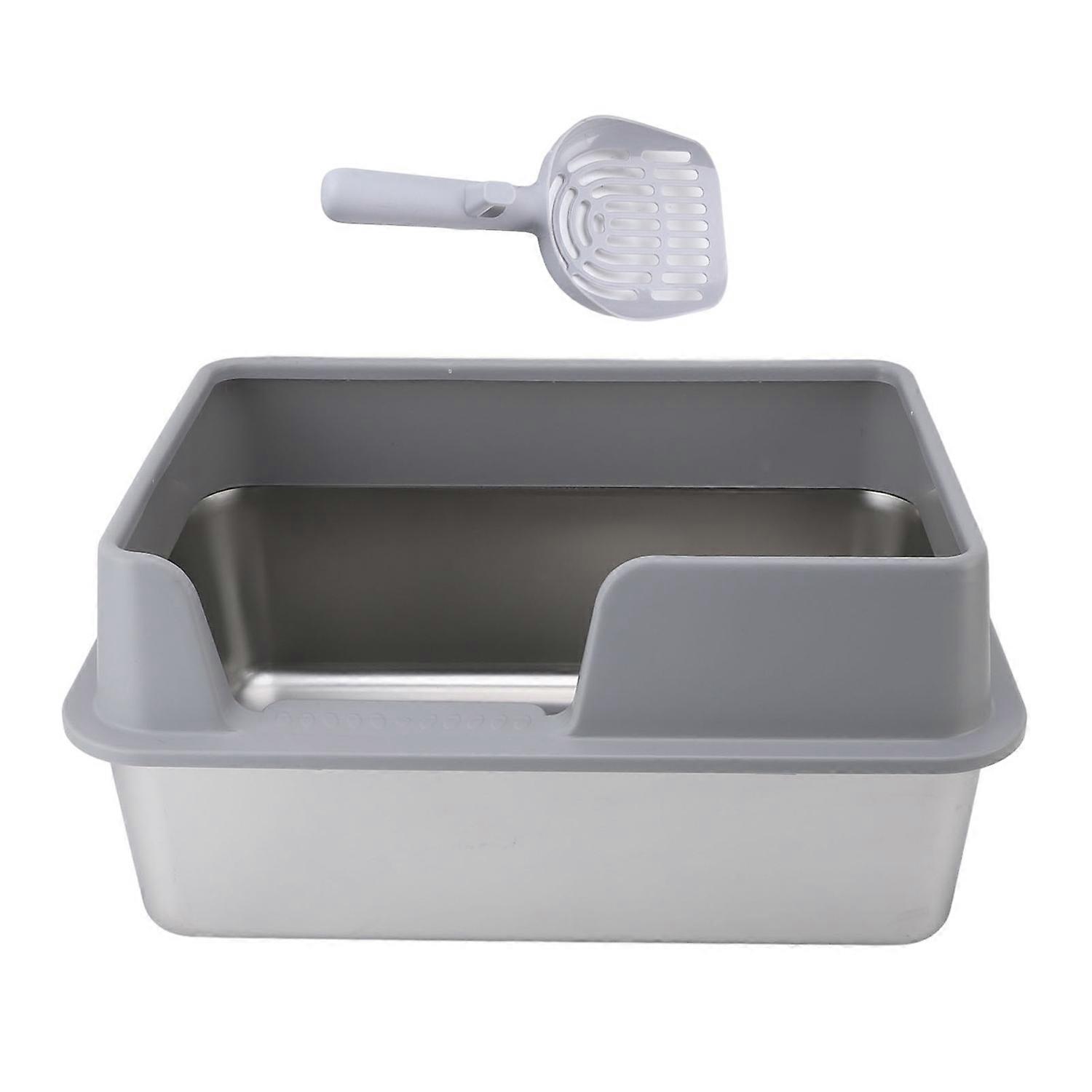 Feature: 1. High Walls for Anti Splash: Stainless steel litter box with side entry design, front and