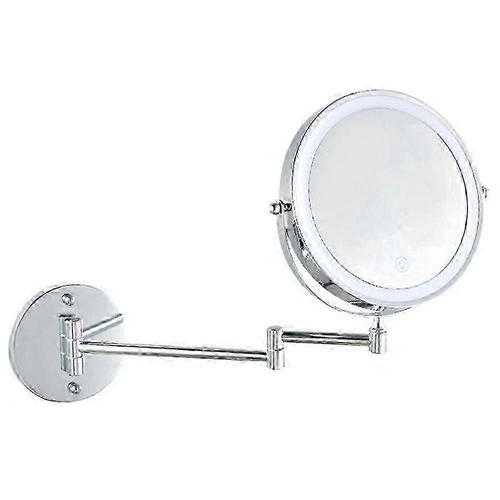 8-Inch Dual-Sided Wall Mounted Makeup Mirror with 5X Magnification and Adjustable LED Lighting