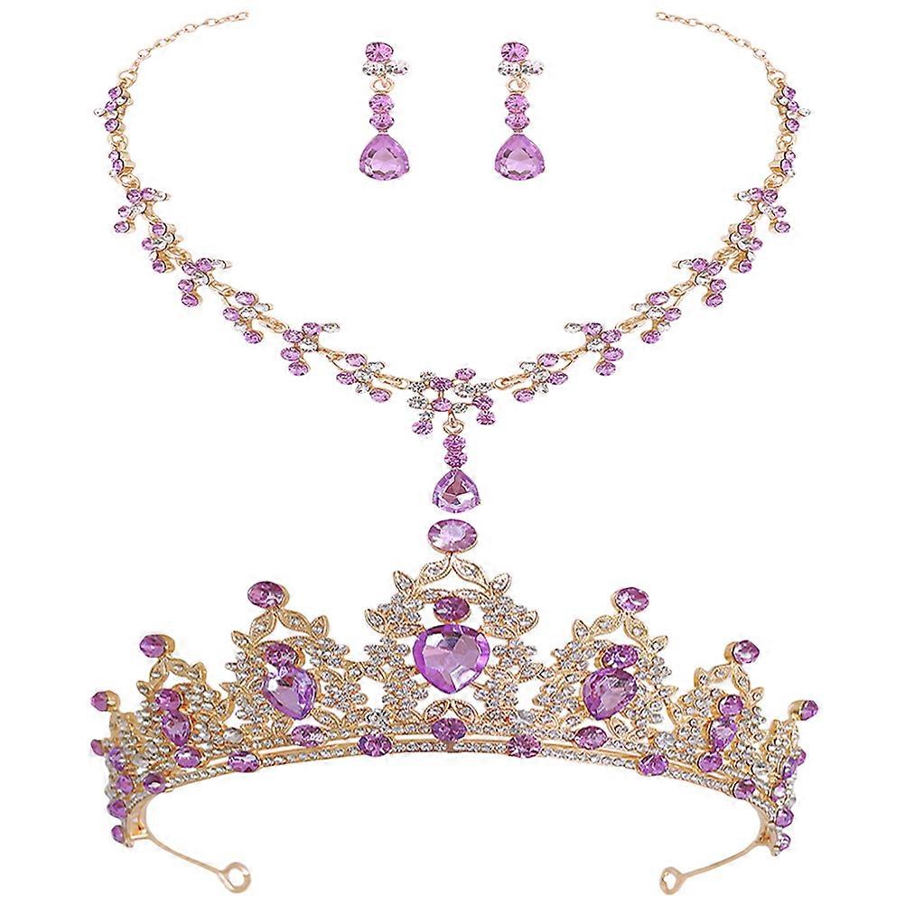 Bridal Jewelry For Weddings 2 Sets Featuring Tiara Necklace Earrings Perfect For Women At Weddings Elegant Decoration