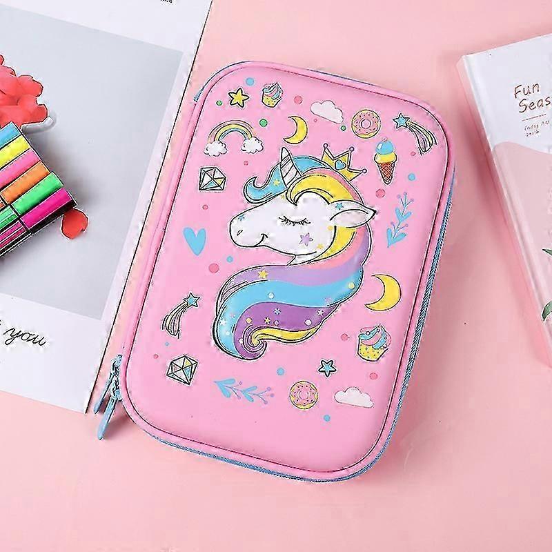 Do you tired of to choose a normal gift for your kids or friends? This Unicorn Pencil case is a great idea to solve your problem. The material is soft and nice touch light weight the printing is colorful and amazing. Every girls and boys will love it. Take it as a best present choice for Birthday gift Thanksgiving gift Christmas gift New Year gift Lover gift and back to school gift. This adorable unicorn is pop-out on the top. Pencil Case opens like book unzipping from 2 sides with 2 puller. You will find 2 mesh pockets 5 pencil slots in middle flap and more space under interlayer to store pens pencils colored pencilsmarkers erasers scissors protractors small notebooks and much more. This pencil case will keep school supplies stationary secured and organized. and will help to develop childrens storage habit. Pencil Case with Compartments: Open the double zipper to see the internal 2 mesh pockets and pen holder inside to keep your stationery organized. Well made and compact: Moulded by light weight and shockproof EVA material. Open the case and you will find a super soft lining inner sleeve for pen storage and 2 mesh pockets for keeping the rest of your stationery in order. the perfect gift for kids to realize their unicorn dreams. Exquisite gift will bring a better surprise to girl. Attractive Pattern: A Pretty Cute Unicorn embossed on the top in these funky colourful moulded hard shell pencil cases. The spacious case in cute design is smooth to touch with a fun pattern on the top. It will make the kids stand out in the classroom. Best young girl gifts for birthday and Christmas. MULTI-FUNCTIONAL: Can be used as the pen bag for students to store all kinds of stationery also can be used a cosmetic bag for girls to put their cosmetic.Suitable for both officeschoolhome use. Unicorn Pencil Case for girl is an ideal gift for you choose as go-to friends birthday present. Measurements : 220mm x 150mm x 55mm (8.7 x 5.9 x 2.2 inch)