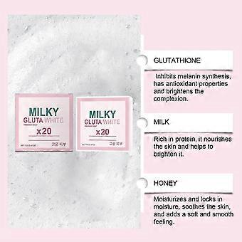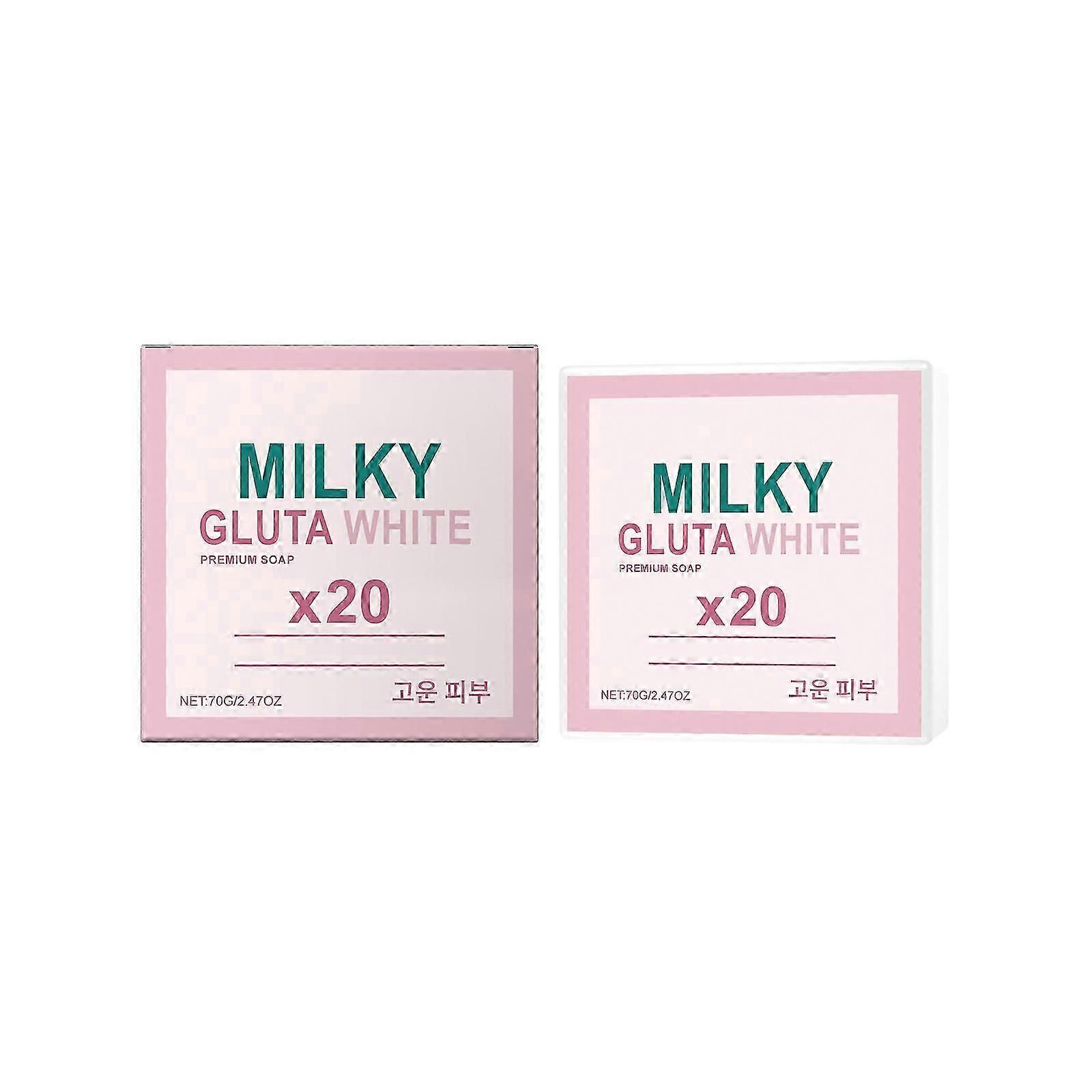 Glutamilk Whitening Soap: Gluta milk soap specially the milk extract can make the skin soft and elastic, and make the skin whiten. Rich foam, deep cleansing, keeping skin moisturized. It can be used for face cleaning, bathing and hand cleaning. Milky Gluta White Soap 20x: Experience the luxury of Glutamilk whitening Soap, your skin's perfect companion for gentle cleansing. This glutamilk soap refreshes your skin, leaving it feeling fabulous after every wash. Mild Ingredients for Sensitive Skin: Made by hand with care, Gluta milk whitening Soap features mild ingredients that are non-irritating, making it highly effective for sensitive skin types. Natural Ingredients: Gluta milk soap with the highest quality natural ingredients made by hand, the mild formula is not irritating, very effective for sensitive skin.The foam is rich and light, and it can easily take away greasy dirt and let the skin full of elastic luster. Skin Bleaching Soap: Elevate your skincare routine with Glutamilk whitening Bar Soap. Each lather not only cleanses but also hydrates your skin, giving you a soft and supple feel turning your shower into a rejuvenating spa experience.