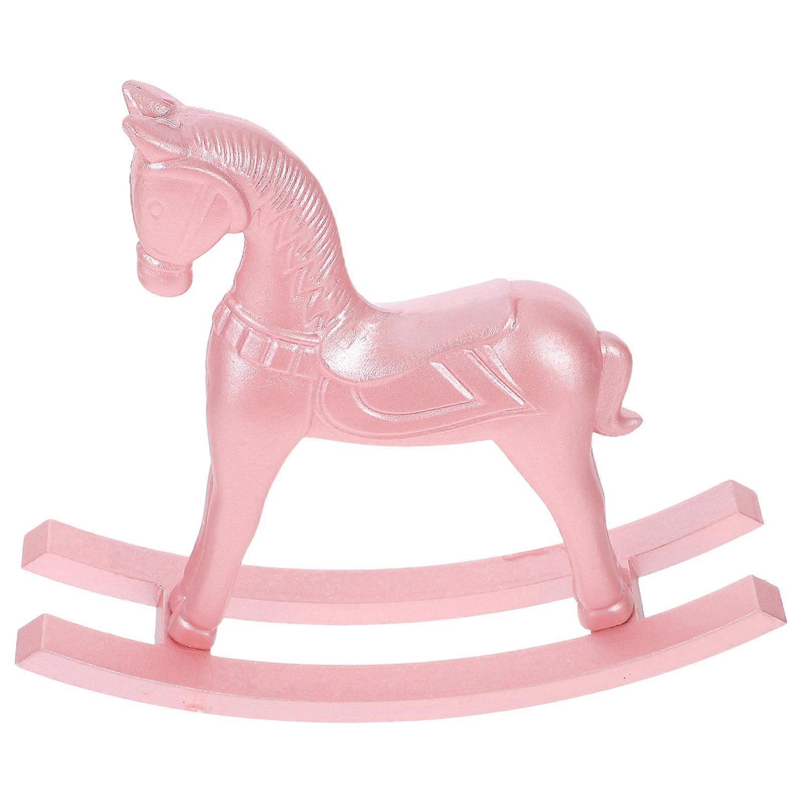 Wooden Rocking Horse Ornament for Home Decor 4Pcs Pink Miniature Model
