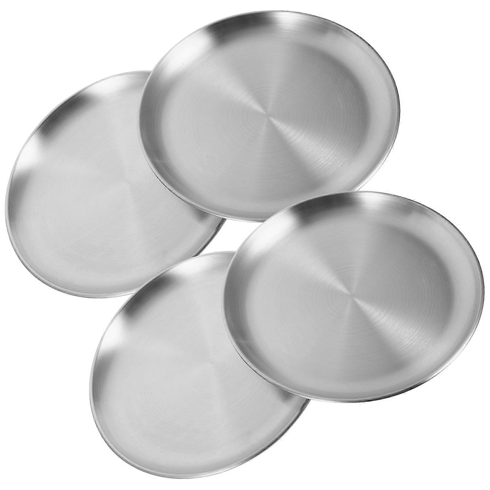 Round Pizza Pan 4Pcs Silver Stainless Steel with Effortless Release for Storage