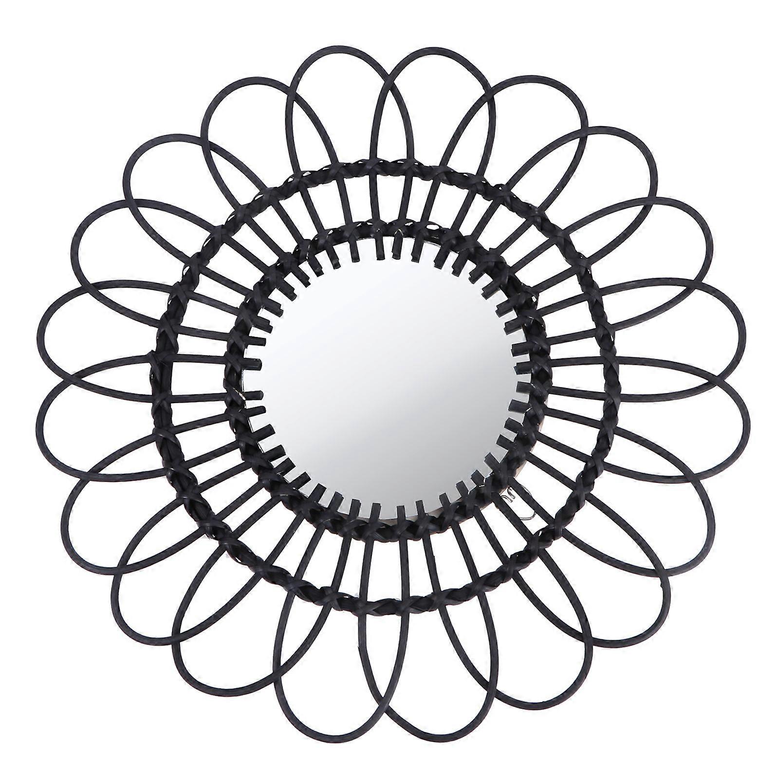 Wall Hanging Mirror 1Pcs Black Chic Wall Art Woven Rattan Mirror Decor