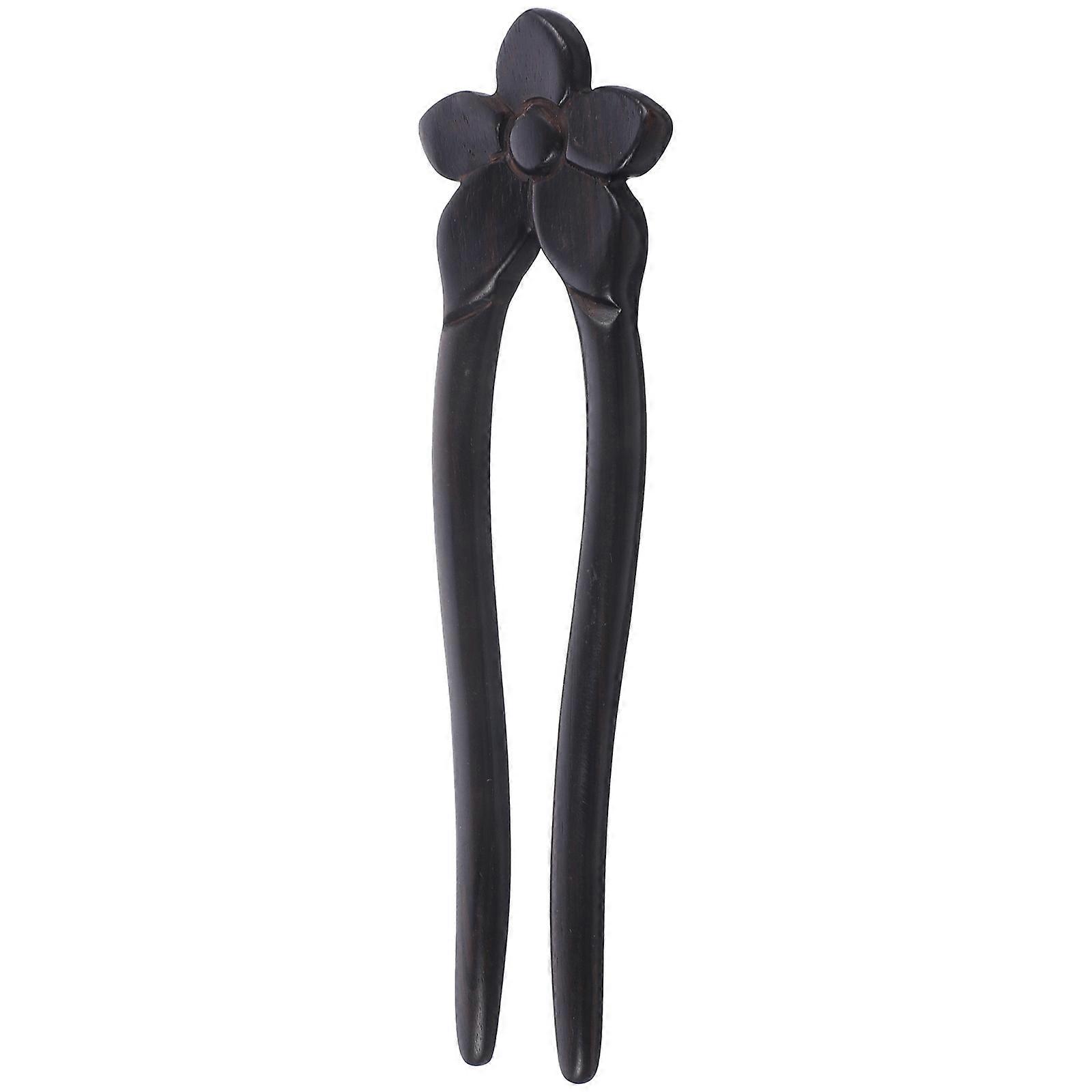French Style Ebony Hair Stick U Shaped Flower Hairpin for Decoration 3Pcs