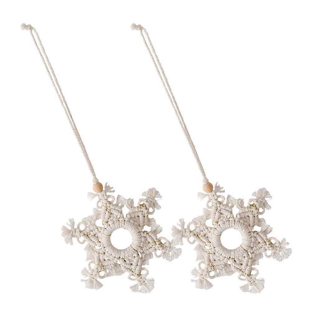 Snowflake Pendant Hanging Decor For Christmas Trees Wall Decoration Woven Design Light Yellow 4Pcs