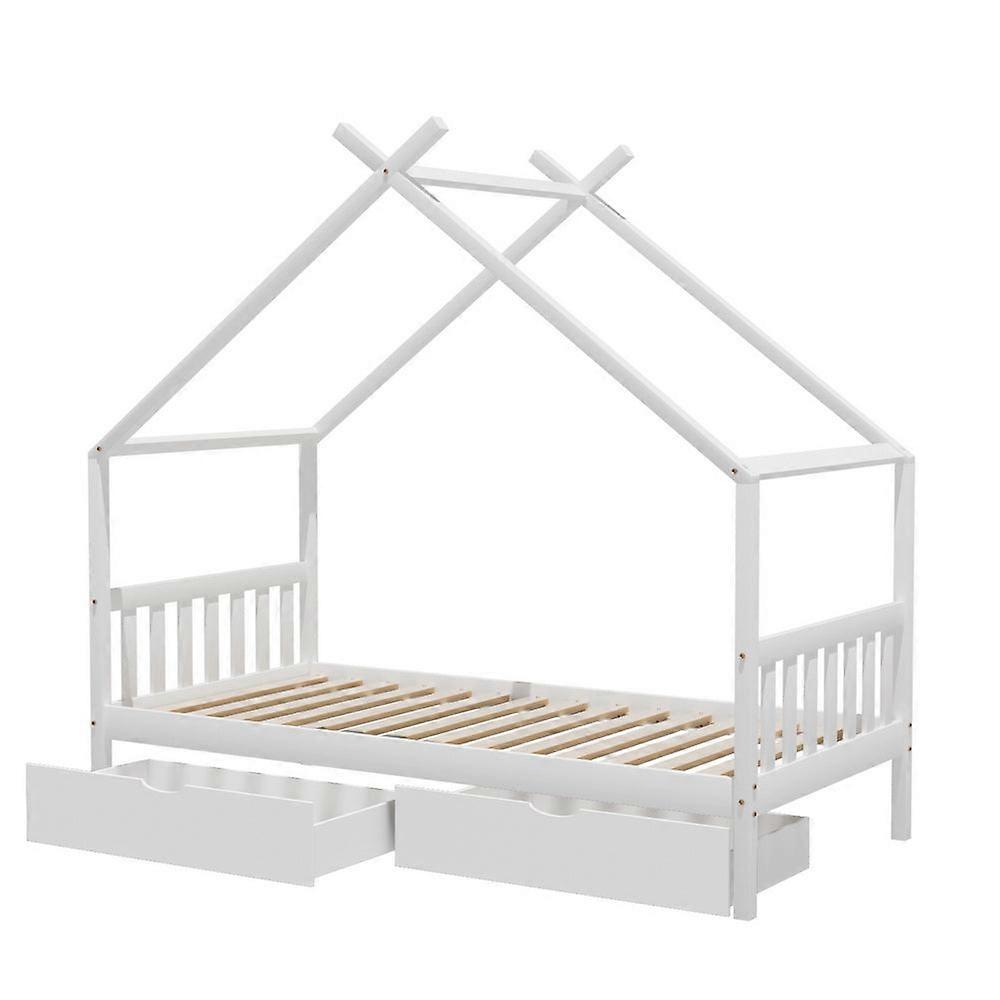 Artiss Bed Frame Wooden Base Kids Single Timber House With 2 Storage Drawers Beds White Single Bed Frames