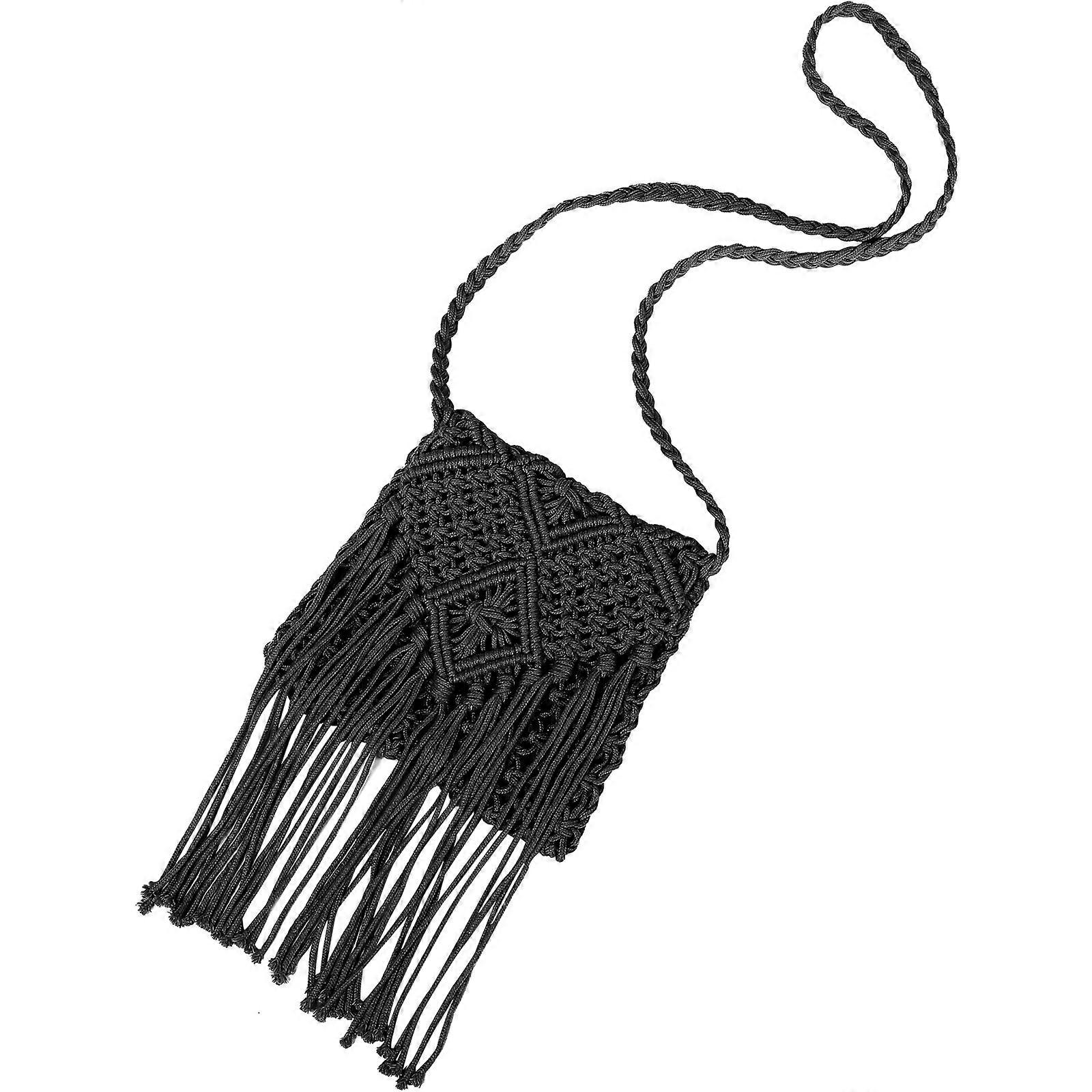 Woven Crossbody Bags for Women Small Shoulder Purse Black Straw with Tassel Accent for Storage Use