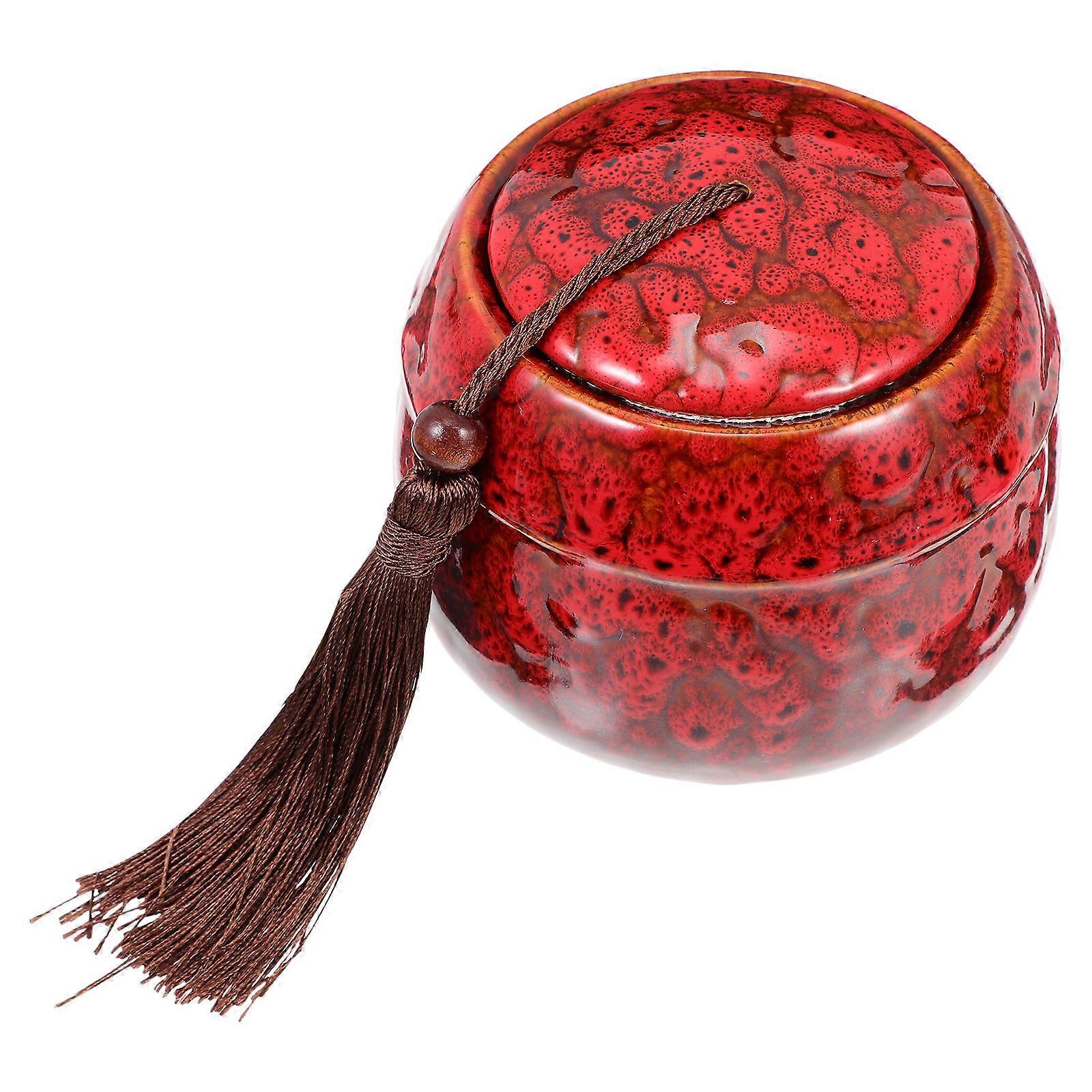 Vintage Tassel Lid Tea Canister Red Ceramic Food Canister Designed for Storage