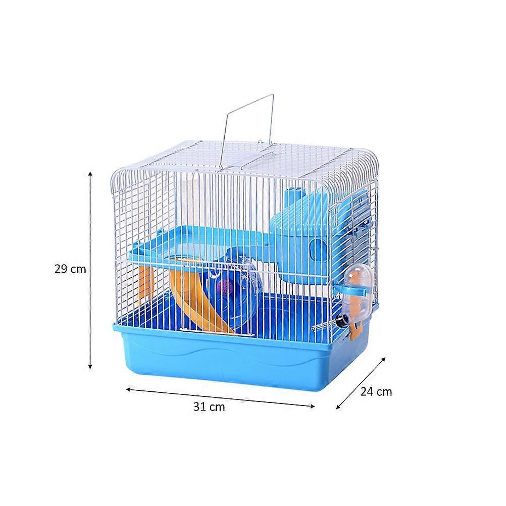 Blue Hamster Cage Double Layers Pet House for Chinchilla Care