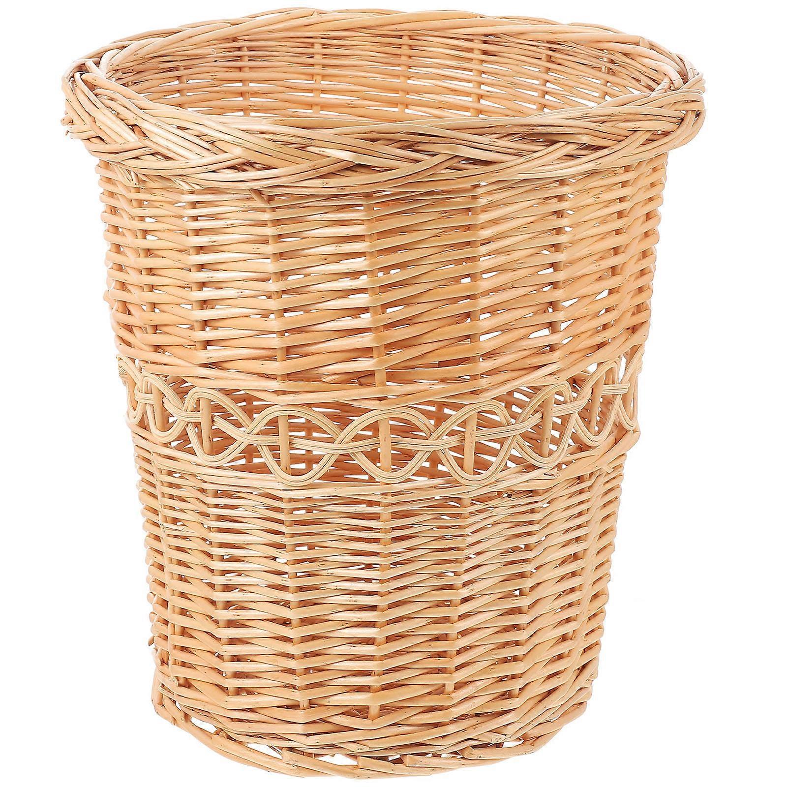 Pastoral Style Garbage Bin Light Yellow Wicker Elegant Versatile Use for Home Bathroom