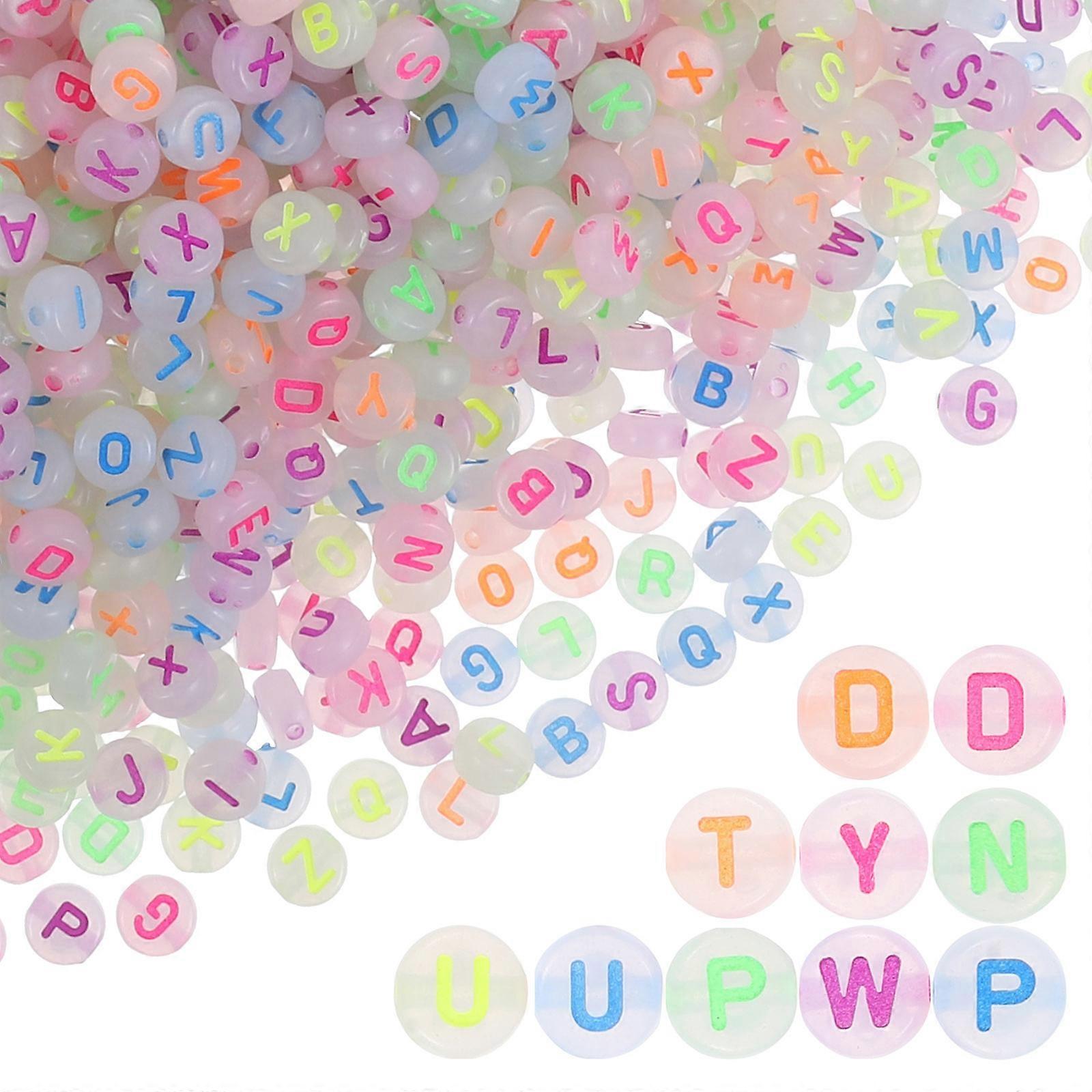DIY Bracelet Beads 1000Pcs Assorted Color Plastic Glow in The Dark Alphabet Beads for DIY Use