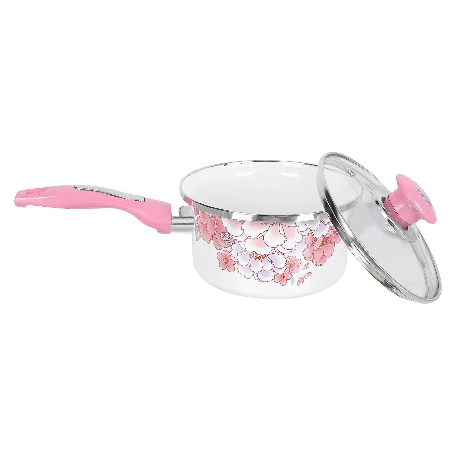 Milk Pot with Lid 1Pcs Pink Enamel Non-Stick Pot for Healthier Cooking Use in Kitchen
