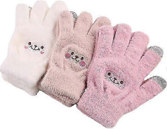 "Autumn and Winter Warm Gloves Touchable Screen Gloves Women's Cute Split Finger Gloves Fashion Trend pattern Glove White Skin Pink 7*19cm"