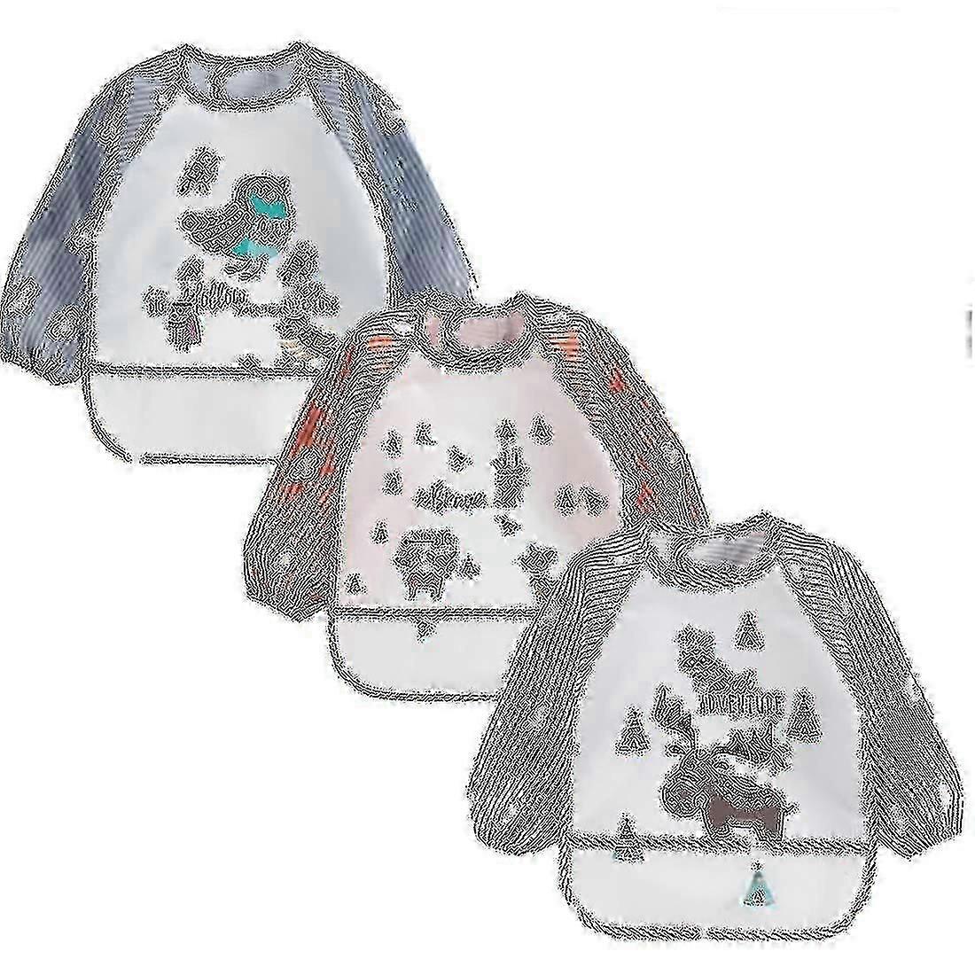 3-Piece Waterproof Baby Bib Set with Full Sleeves - Machine Washable for Messy Meals