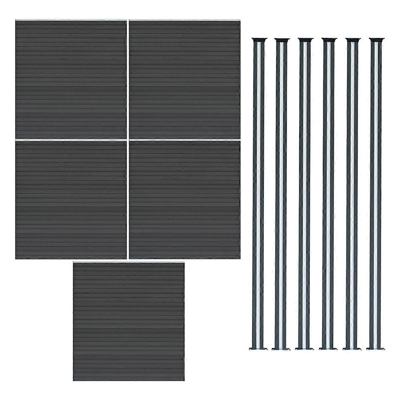 Composite Fence Panel x 5 & LED Posts 6ft x 29ft - Grey