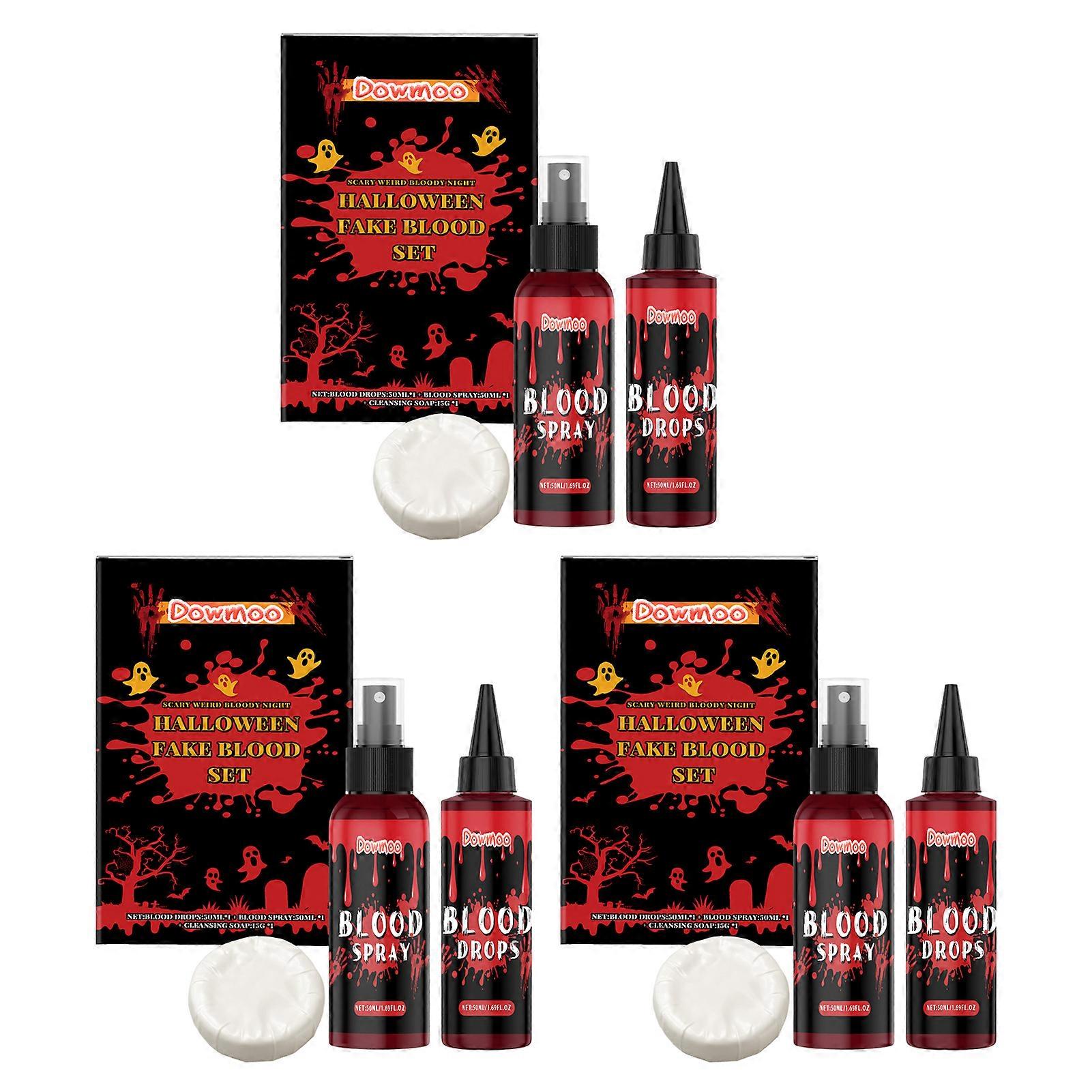Ultra-Realistic Washable Fake Blood Spray for Halloween, 3-Piece SFX Makeup Kit for Costumes, Cosplay & Horror Props