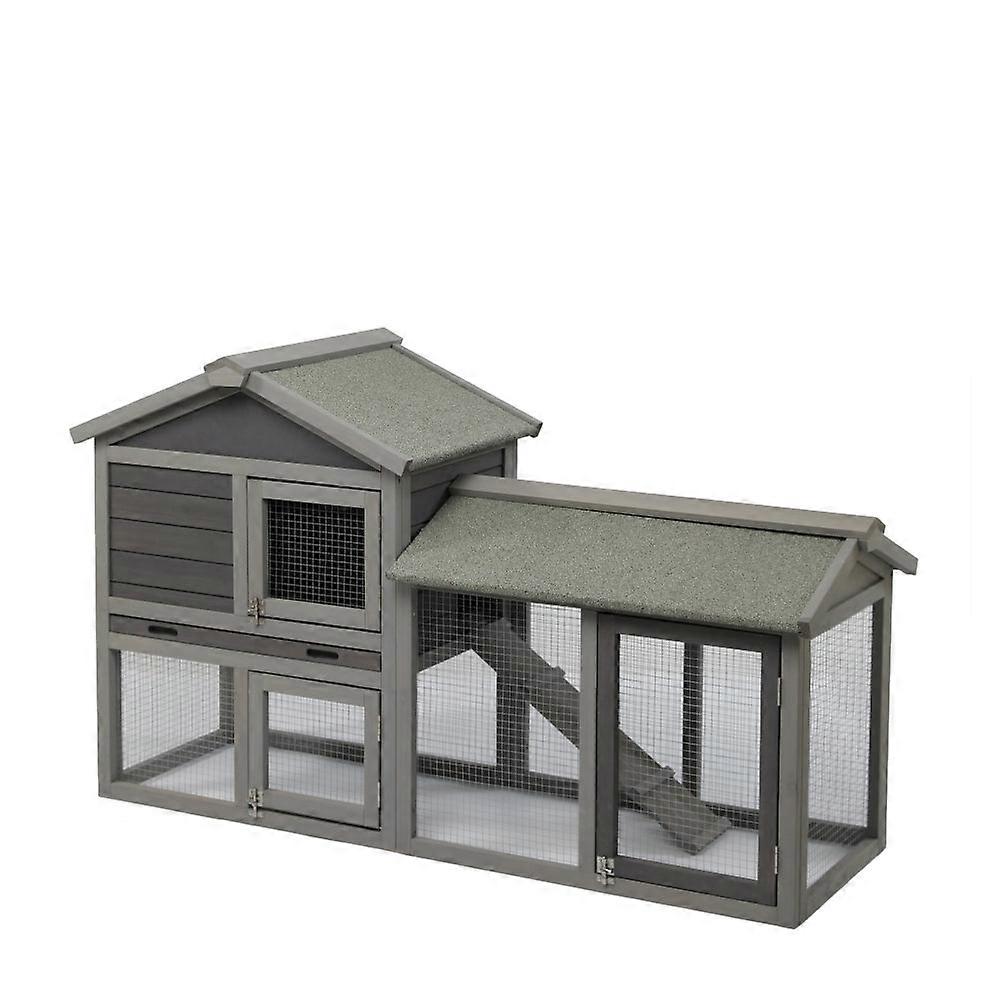Durable Fir Wood Construction With Galvanised Wire For Security And Ventilation Eco-Friendly Materials Safe For Pets Spacious Integrated Ground-Level Play Area For Exercise And Grazing Double-Story Design Provides Both Shelter And Outdoor Access Grey Asphalt Roof Offers Protection From Rain And Sun Multiple Easy-Access Doors For Convenient Feeding And Interaction Slide-Out Tray For Quick And Easy Cleaning Open Floor Section Allows Pets To Graze Directly On The Grass Simple Assembly With Clear Instructions Specifications: