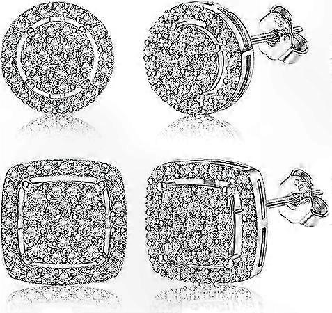 Men's Square Stud Earrings in Sterling Silver with Black, Silver, and Gold Iced Halo Design