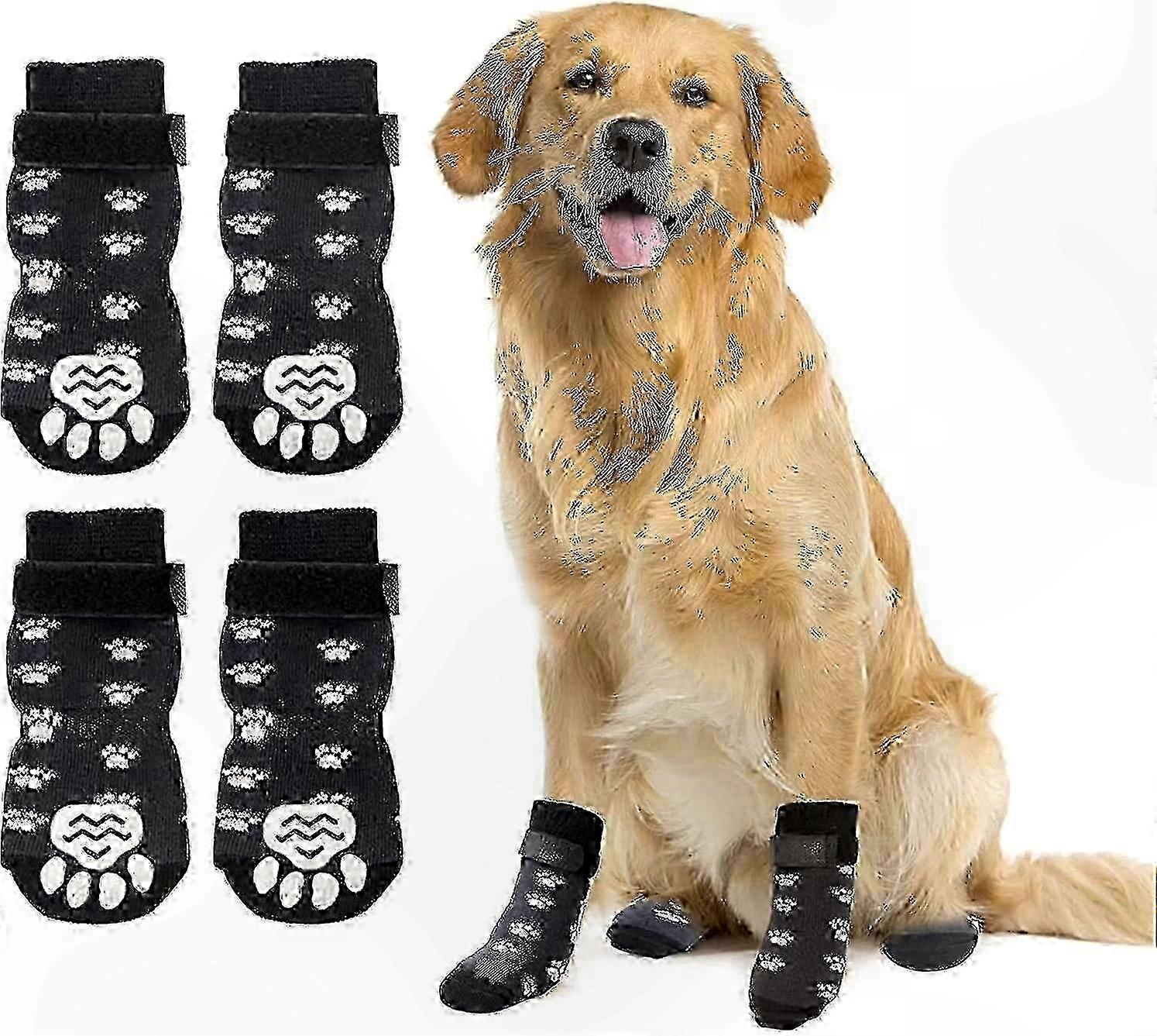 2 Pairs Anti Slip Dog Socks, Dog Grip Socks With Straps Traction Control For Indoor On Hardwood Floor. AVAILABLE IN 3 SIZES: Small grip width 1.7in, sock length 5.3in, paw width 2.1in. Medium grip width 1.7in, sock length 5.7in, paw width 2.5in. Large grip width 1.7in, sock length 6.2in, paw width 2.9in. Please measure your pet's paws carefully and choose the suitable size before ordering. If between sizes, choose the smaller size. SOFT MATERIAL: These dog knitted socks are made of high-quality breathable cotton and anti-slip rubber with cute paw print design, providing warmth, comfort, and safety. Ideal for indoor use. Hand wash recommended. FUNCTIONAL DESIGN: Features extra elastic loop fastener and secure fit design to keep socks tightly wrapped on paws, ensuring they stay in place and do not fall off easily. Anti-slip silicone gel on soles provides enhanced traction, helping prevent slipping and reduce the risk of falls. UNEXPECTED BENEFITS: Durable indoor anti-slip socks help keep your pet's paws clean and warm in cold weather. Helps protect hardwood floors, sofas, and other furniture from scratches caused by pets.