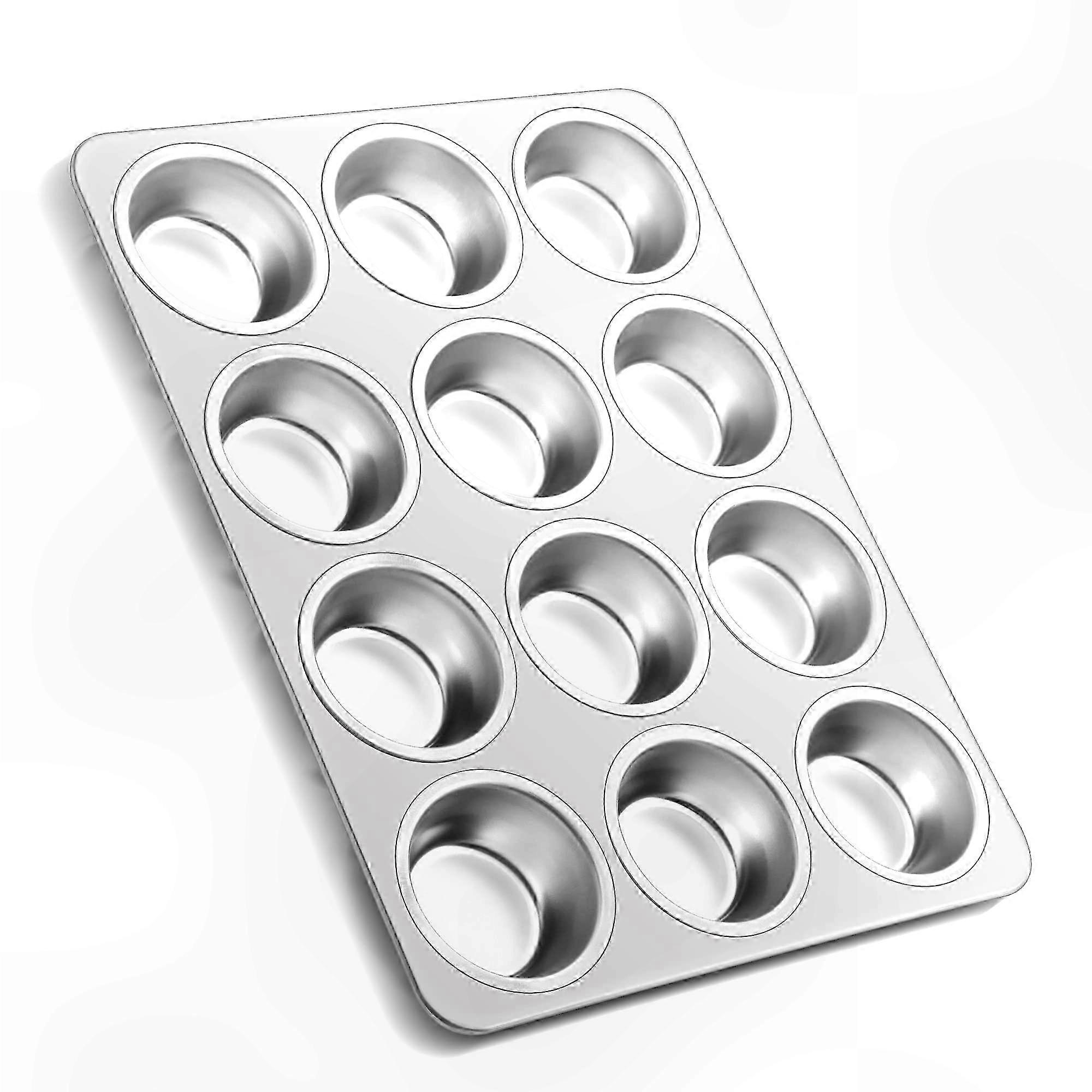 Bakery-Grade Muffin Tray - Sturdy Metal, Safe Non-Toxic Material, Fits Oven & Dishwasher, 35 x 27 cm Size for 12 Cupcakes