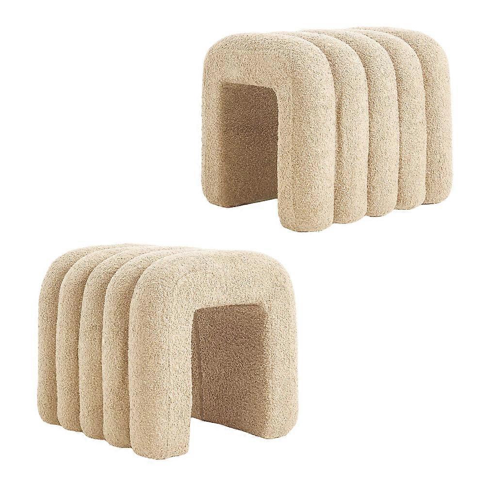 2X Ridge Arch Ottoman Stool Teddy Fleece Fabric Foot Rest 45Cm Beige Ottomans Footstools & Poufs