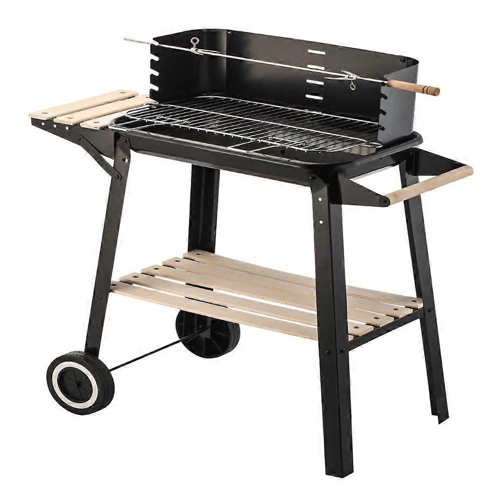 Charcoal Grill Bbq With Manual Rotisserie Stick On Trolley Stand Barbecues Grills & Smokers